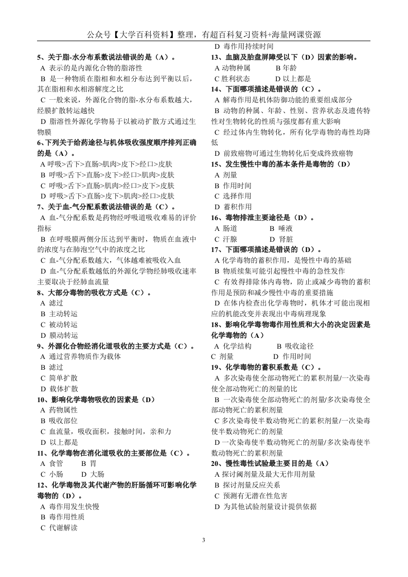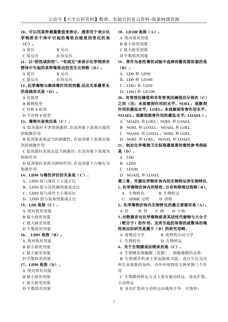 毒理学基础试题整理(全)附答案猴哥6个月前发布关注私信0.12MB14页08455毒理学基础试题整理(全)附答案此内容为免费资源,请登录后查看¥0 登录查看免费资源 第1页 / 共14页 第2页 / 共14页 第3页 / 共14页 该文档为免费文档,您可直接下载完整版进行阅读 © 版权声明文章版权归作者所有,未经允许请勿转载。THE END期末复习 喜欢就支持一下吧点赞55赞赏 分享QQ空间微博QQ好友海报分享复制链接收藏