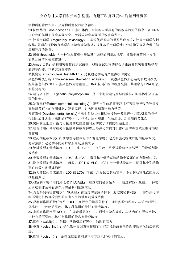 毒理学基础-名解、大体部分重点总结猴哥6个月前发布关注私信30KB5页08563毒理学基础-名解、大体部分重点总结此内容为免费资源,请登录后查看¥0 登录查看免费资源 第1页 / 共5页 第2页 / 共5页 第3页 / 共5页 该文档为免费文档,您可直接下载完整版进行阅读 © 版权声明文章版权归作者所有,未经允许请勿转载。THE END期末复习 喜欢就支持一下吧点赞63赞赏 分享QQ空间微博QQ好友海报分享复制链接收藏