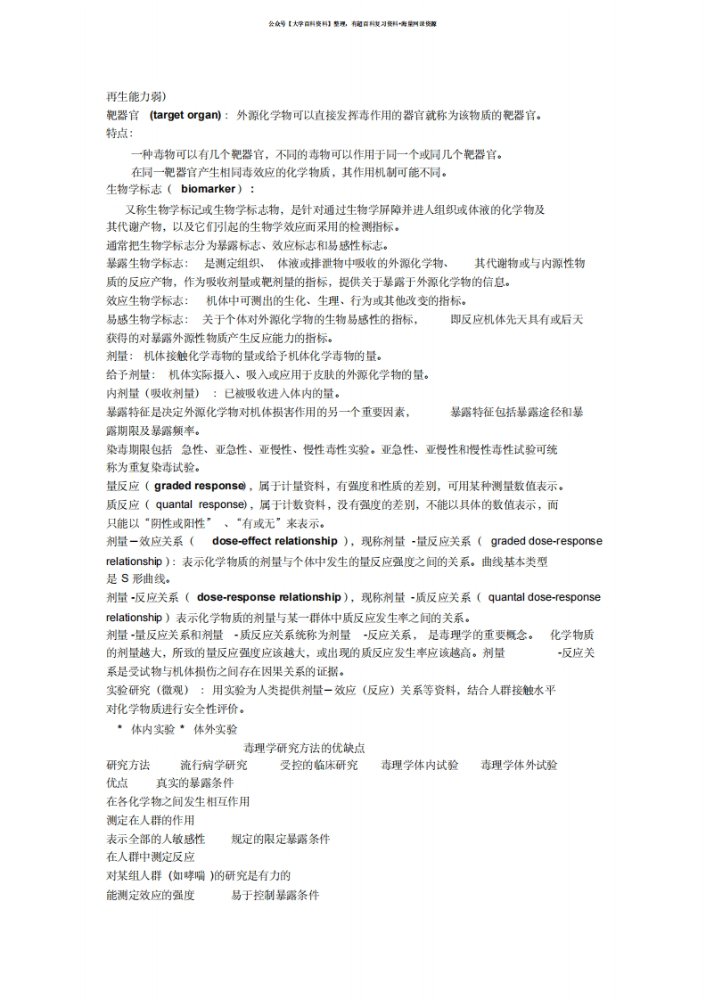 毒理学基础各章节知识点猴哥6个月前发布关注私信0.25MB16页05848毒理学基础各章节知识点此内容为免费资源,请登录后查看¥0 登录查看免费资源 第1页 / 共16页 第2页 / 共16页 第3页 / 共16页 该文档为免费文档,您可直接下载完整版进行阅读 © 版权声明文章版权归作者所有,未经允许请勿转载。THE END期末复习 喜欢就支持一下吧点赞48赞赏 分享QQ空间微博QQ好友海报分享复制链接收藏
