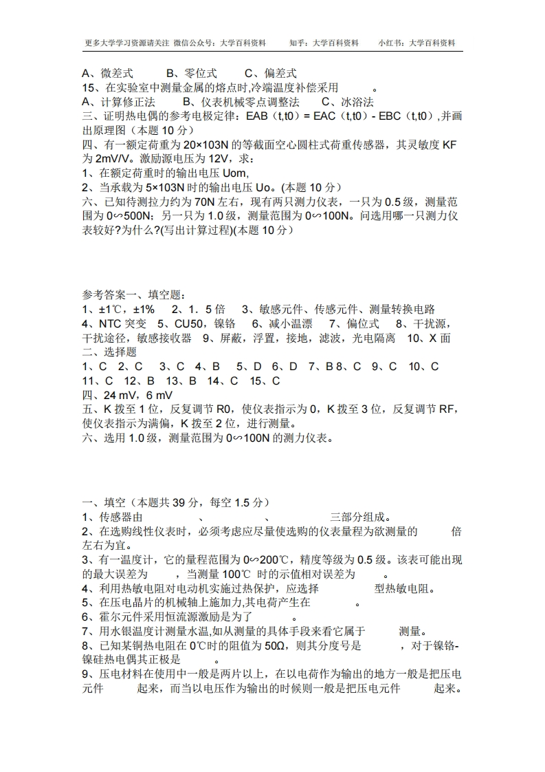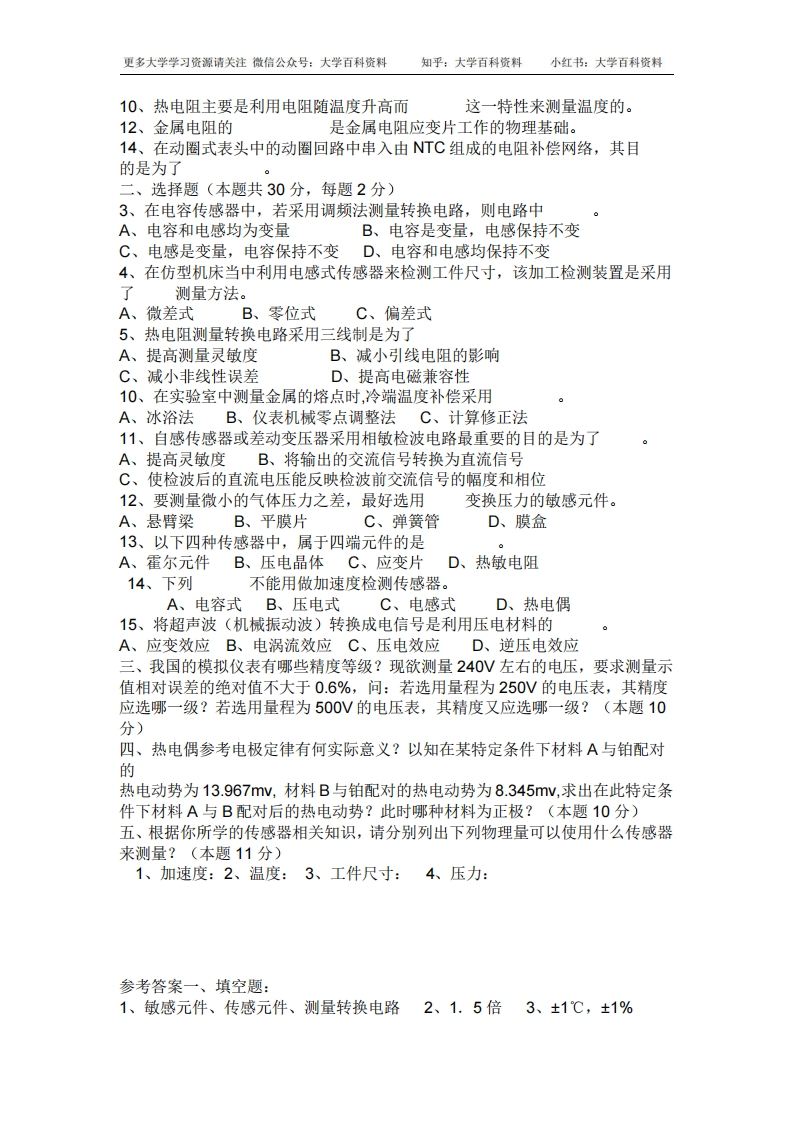 《传感器原理及应用》的试题及答案-学习资源网 - 分享优质学习资料
