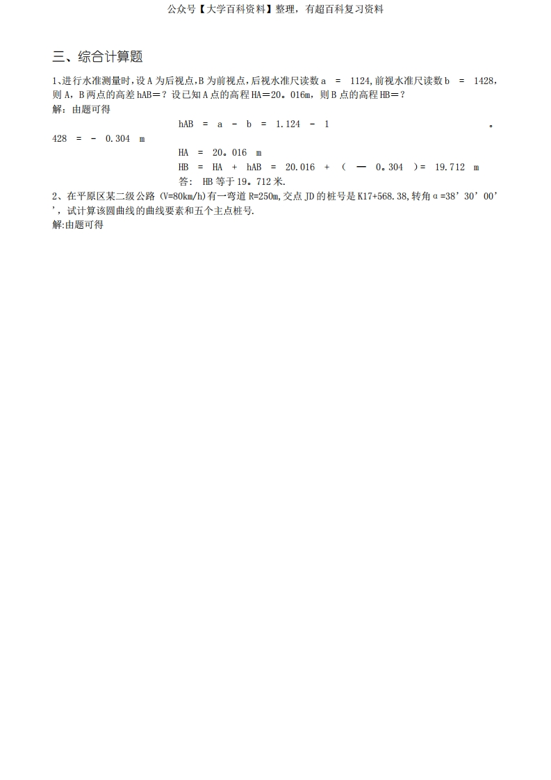 道路工程测量实训【习题和答案】-学习资源网 - 分享优质学习资料
