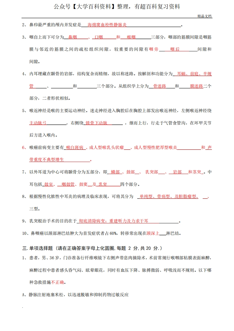 临床医学本科耳鼻咽喉科试卷及答案猴哥6个月前发布关注私信0.29MB5页06524临床医学本科耳鼻咽喉科试卷及答案此内容为免费资源,请登录后查看¥0 登录查看免费资源 第1页 / 共5页 第2页 / 共5页 第3页 / 共5页 该文档为免费文档,您可直接下载完整版进行阅读 © 版权声明文章版权归作者所有,未经允许请勿转载。THE END期末复习 喜欢就支持一下吧点赞24赞赏 分享QQ空间微博QQ好友海报分享复制链接收藏
