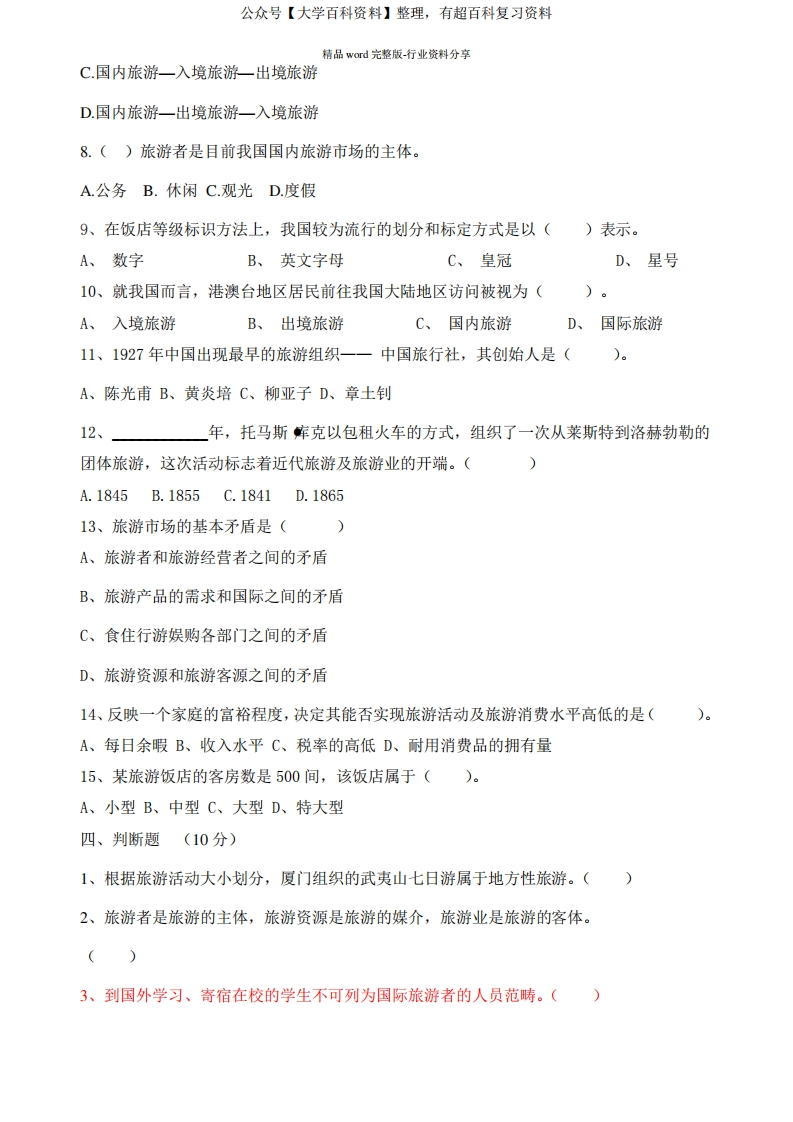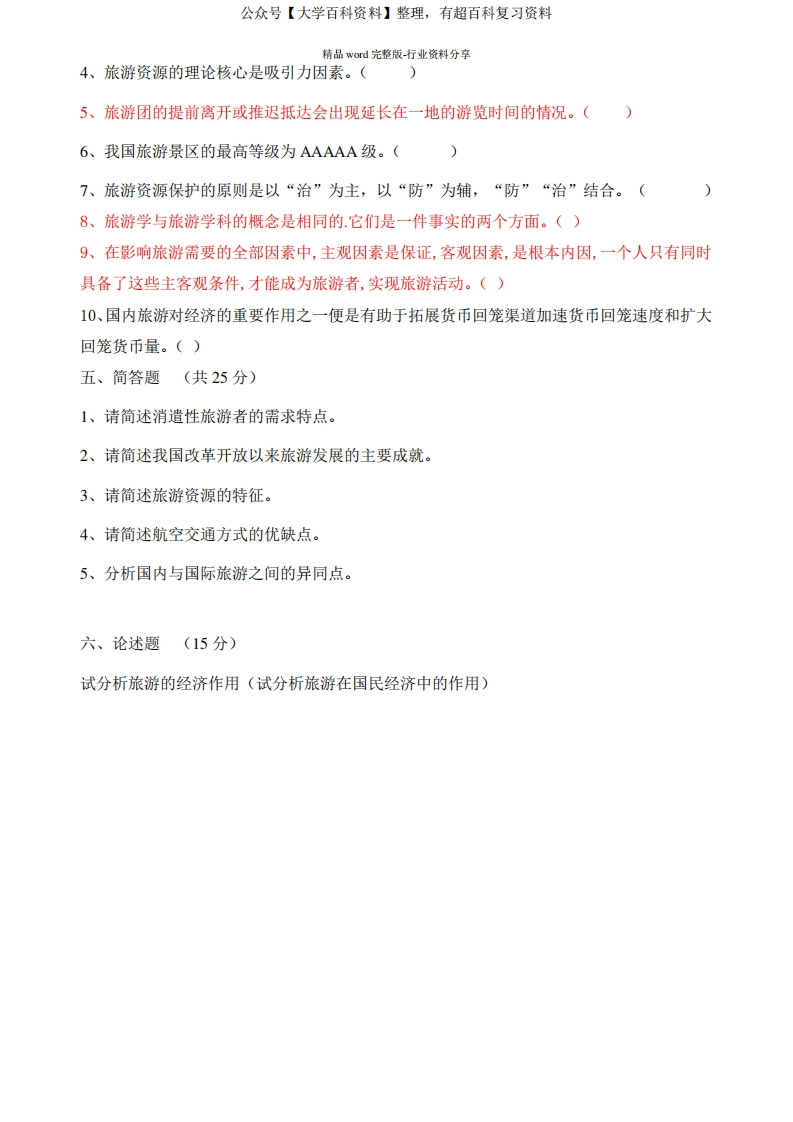 风景旅游期末试题及答案猴哥6个月前发布关注私信0.26MB6页07721风景旅游期末试题及答案此内容为免费资源,请登录后查看¥0 登录查看免费资源 第1页 / 共6页 第2页 / 共6页 第3页 / 共6页 该文档为免费文档,您可直接下载完整版进行阅读 © 版权声明文章版权归作者所有,未经允许请勿转载。THE END期末复习 喜欢就支持一下吧点赞21赞赏 分享QQ空间微博QQ好友海报分享复制链接收藏