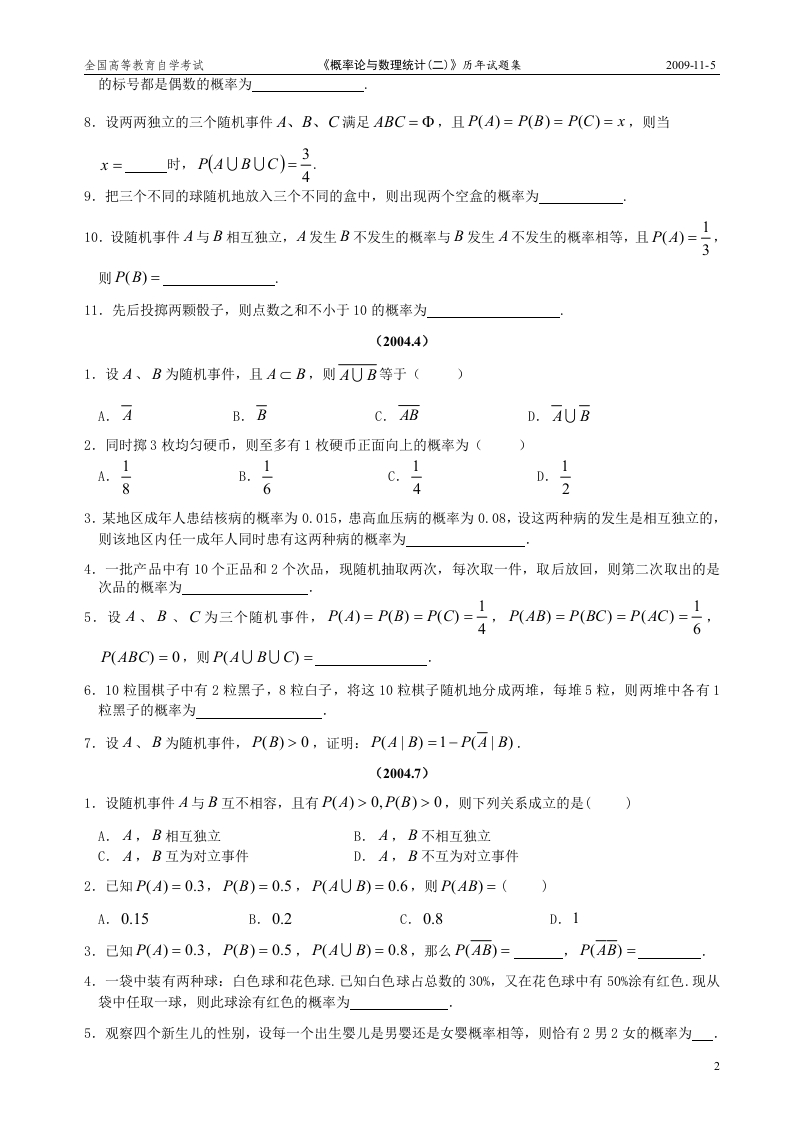 全国高等教育自学考试《概率论与数理统计(二)》历年试题集猴哥6个月前发布关注私信3.04MB43页03927全国高等教育自学考试《概率论与数理统计(二)》历年试题集此内容为免费资源,请登录后查看¥0 登录查看免费资源 第1页 / 共43页 第2页 / 共43页 第3页 / 共43页 该文档为免费文档,您可直接下载完整版进行阅读 © 版权声明文章版权归作者所有,未经允许请勿转载。THE END期末复习 喜欢就支持一下吧点赞27赞赏 分享QQ空间微博QQ好友海报分享复制链接收藏