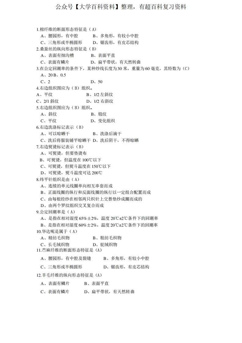 服装材料学试题库猴哥6个月前发布关注私信0.61MB10页09035服装材料学试题库此内容为免费资源,请登录后查看¥0 登录查看免费资源 第1页 / 共10页 第2页 / 共10页 第3页 / 共10页 该文档为免费文档,您可直接下载完整版进行阅读 © 版权声明文章版权归作者所有,未经允许请勿转载。THE END期末复习 喜欢就支持一下吧点赞35赞赏 分享QQ空间微博QQ好友海报分享复制链接收藏
