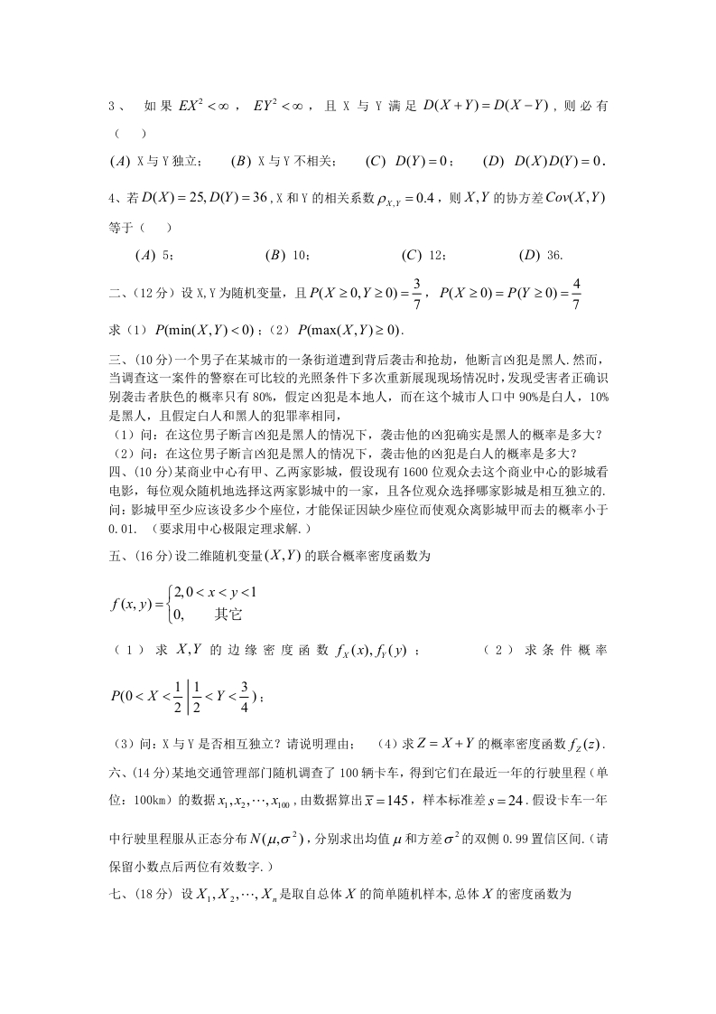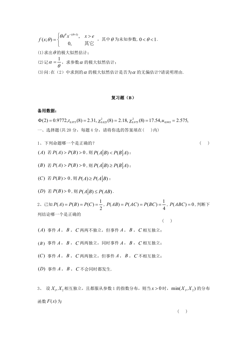 概率统计复习题猴哥6个月前发布关注私信0.52MB9页06555概率统计复习题此内容为免费资源,请登录后查看¥0 登录查看免费资源 第1页 / 共9页 第2页 / 共9页 第3页 / 共9页 该文档为免费文档,您可直接下载完整版进行阅读 © 版权声明文章版权归作者所有,未经允许请勿转载。THE END期末复习 喜欢就支持一下吧点赞55赞赏 分享QQ空间微博QQ好友海报分享复制链接收藏