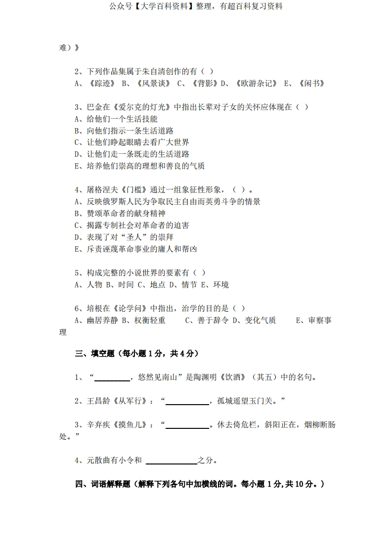 大学语文试题及参考答案猴哥6个月前发布关注私信0.26MB6页08550大学语文试题及参考答案此内容为免费资源,请登录后查看¥0 登录查看免费资源 第1页 / 共6页 第2页 / 共6页 第3页 / 共6页 该文档为免费文档,您可直接下载完整版进行阅读 © 版权声明文章版权归作者所有,未经允许请勿转载。THE END期末复习 喜欢就支持一下吧点赞50赞赏 分享QQ空间微博QQ好友海报分享复制链接收藏