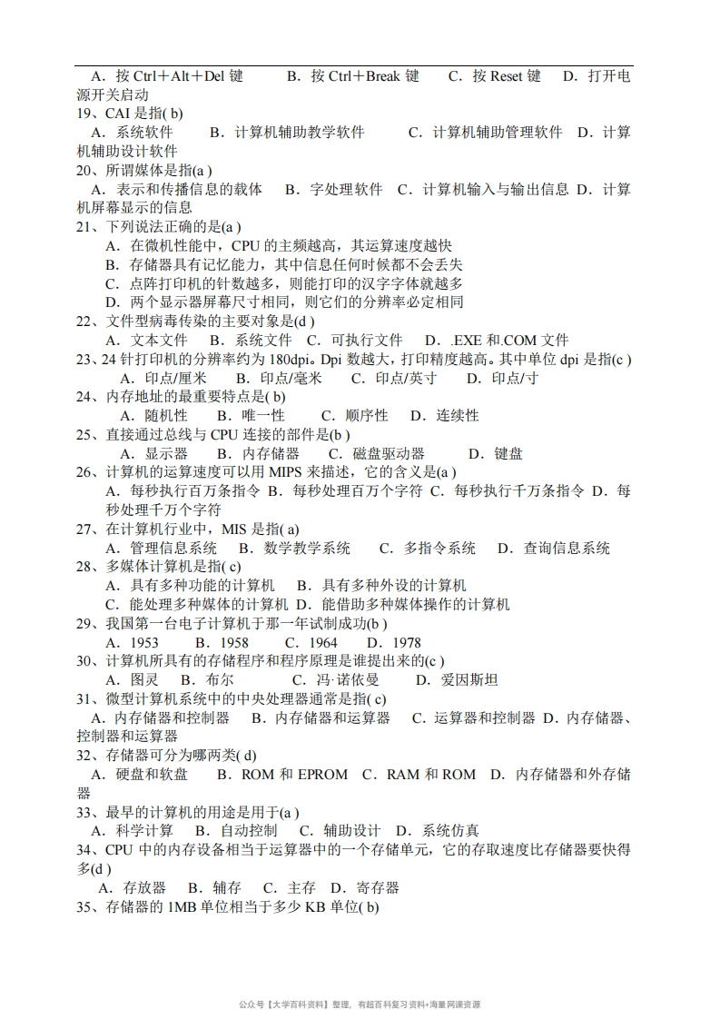 大学计算机基础知识100题(含答案)猴哥6个月前发布关注私信0.16MB7页04055大学计算机基础知识100题(含答案)此内容为免费资源,请登录后查看¥0 登录查看免费资源 第1页 / 共7页 第2页 / 共7页 第3页 / 共7页 该文档为免费文档,您可直接下载完整版进行阅读 © 版权声明文章版权归作者所有,未经允许请勿转载。THE END期末复习 喜欢就支持一下吧点赞55赞赏 分享QQ空间微博QQ好友海报分享复制链接收藏