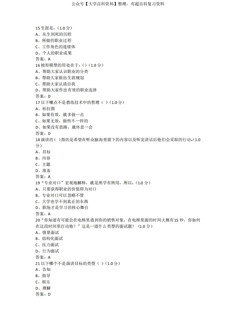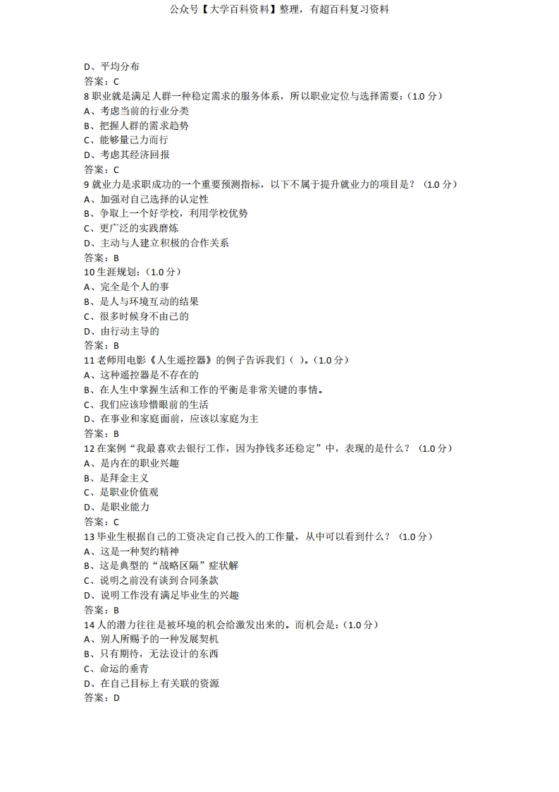 大学生职业生涯规划期末考试答案猴哥6个月前发布关注私信2.99MB73页09461大学生职业生涯规划期末考试答案此内容为免费资源,请登录后查看¥0 登录查看免费资源 第1页 / 共73页 第2页 / 共73页 第3页 / 共73页 该文档为免费文档,您可直接下载完整版进行阅读 © 版权声明文章版权归作者所有,未经允许请勿转载。THE END期末复习 喜欢就支持一下吧点赞61赞赏 分享QQ空间微博QQ好友海报分享复制链接收藏