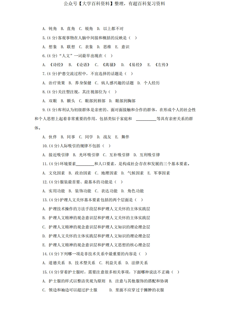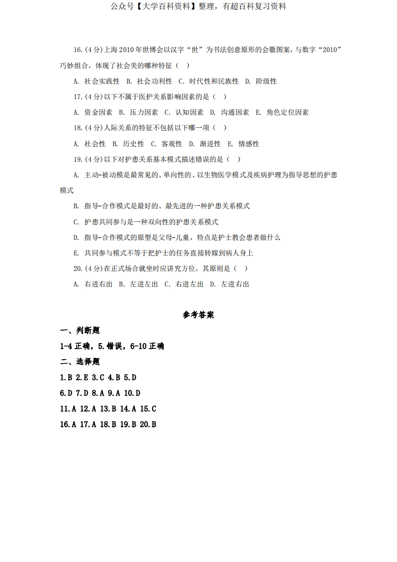 《护士人文修养》试题库及答案(二)猴哥6个月前发布关注私信1.05MB15页08041《护士人文修养》试题库及答案(二)此内容为免费资源,请登录后查看¥0 登录查看免费资源 第1页 / 共15页 第2页 / 共15页 第3页 / 共15页 该文档为免费文档,您可直接下载完整版进行阅读 © 版权声明文章版权归作者所有,未经允许请勿转载。THE END期末复习 喜欢就支持一下吧点赞41赞赏 分享QQ空间微博QQ好友海报分享复制链接收藏
