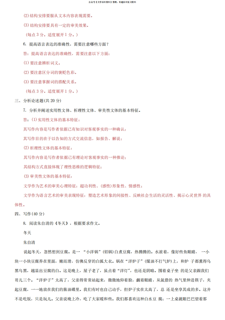 2021国家开放大学电大专科《基础写作》期末试题及答案(试卷号:2412)猴哥6个月前发布关注私信0.21MB4页093392021国家开放大学电大专科《基础写作》期末试题及答案(试卷号:2412)此内容为免费资源,请登录后查看¥0 登录查看免费资源 第1页 / 共4页 第2页 / 共4页 第3页 / 共4页 该文档为免费文档,您可直接下载完整版进行阅读 © 版权声明文章版权归作者所有,未经允许请勿转载。THE END期末复习 喜欢就支持一下吧点赞39赞赏 分享QQ空间微博QQ好友海报分享复制链接收藏