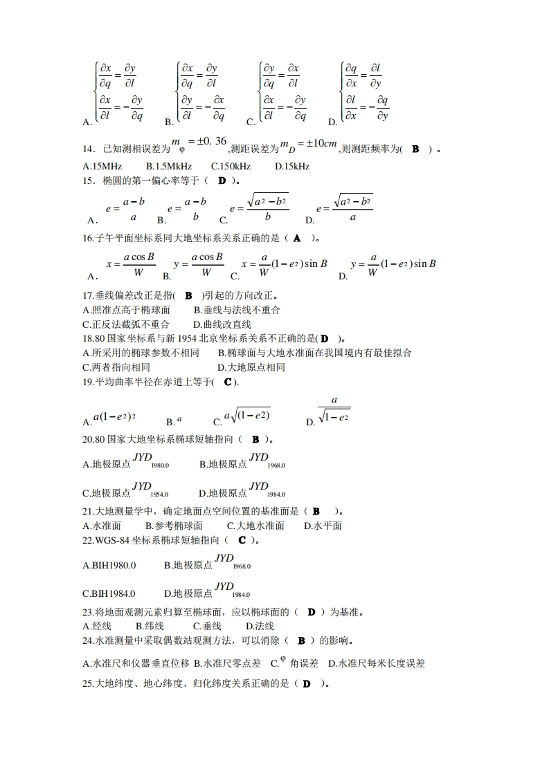 大地测量学基础习题及答案