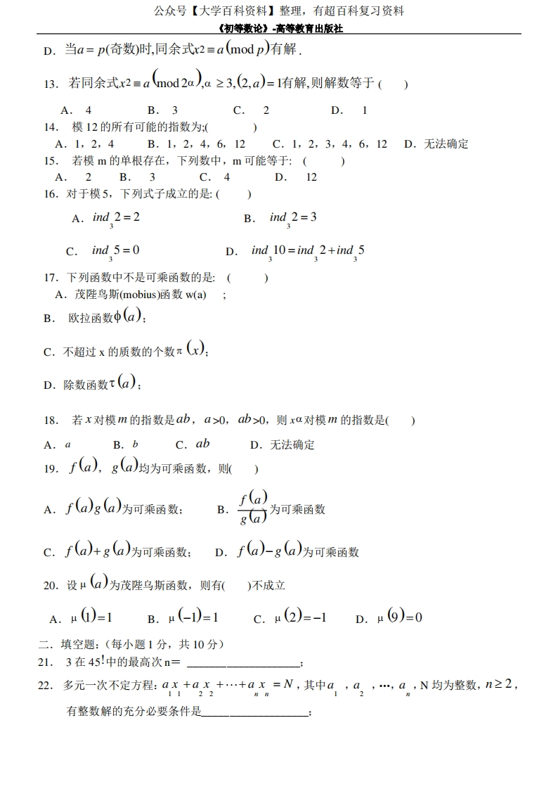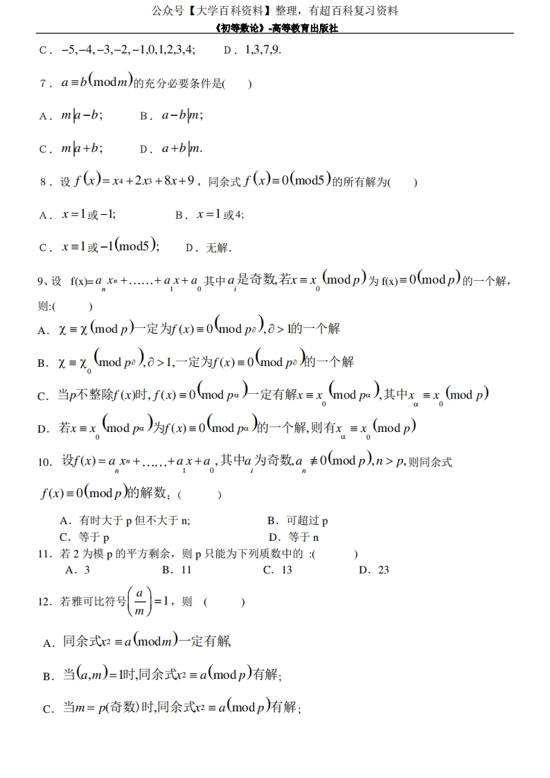 初等数论试卷模拟试题和答案猴哥6个月前发布关注私信2.38MB24页05710初等数论试卷模拟试题和答案此内容为免费资源,请登录后查看¥0 登录查看免费资源 第1页 / 共24页 第2页 / 共24页 第3页 / 共24页 该文档为免费文档,您可直接下载完整版进行阅读 © 版权声明文章版权归作者所有,未经允许请勿转载。THE END期末复习 喜欢就支持一下吧点赞10赞赏 分享QQ空间微博QQ好友海报分享复制链接收藏
