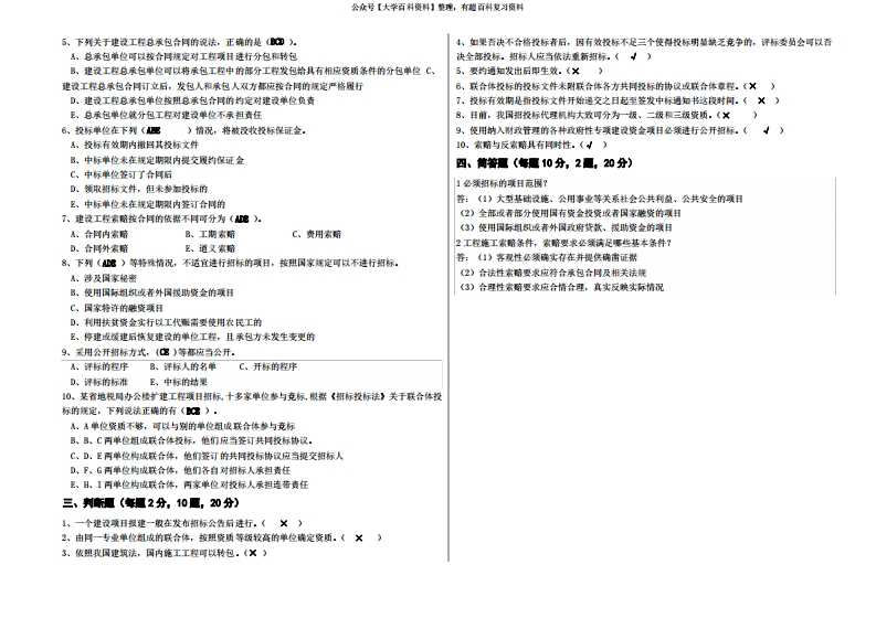 (完整版)建筑工程招投标与合同管理试卷(答案)猴哥6个月前发布关注私信0.15MB2页07461(完整版)建筑工程招投标与合同管理试卷(答案)此内容为免费资源,请登录后查看¥0 登录查看免费资源 第1页 / 共2页 第2页 / 共2页 已完成全部阅读,共2页 © 版权声明文章版权归作者所有,未经允许请勿转载。THE END期末复习 喜欢就支持一下吧点赞61赞赏 分享QQ空间微博QQ好友海报分享复制链接收藏