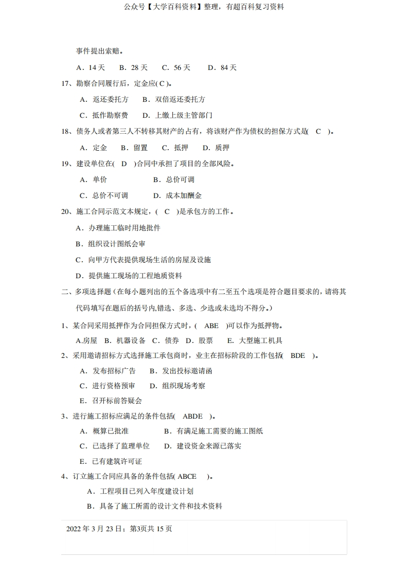工程招投标与合同管理练习题(带答案)猴哥6个月前发布关注私信0.62MB15页08733工程招投标与合同管理练习题(带答案)此内容为免费资源,请登录后查看¥0 登录查看免费资源 第1页 / 共15页 第2页 / 共15页 第3页 / 共15页 该文档为免费文档,您可直接下载完整版进行阅读 © 版权声明文章版权归作者所有,未经允许请勿转载。THE END期末复习 喜欢就支持一下吧点赞33赞赏 分享QQ空间微博QQ好友海报分享复制链接收藏