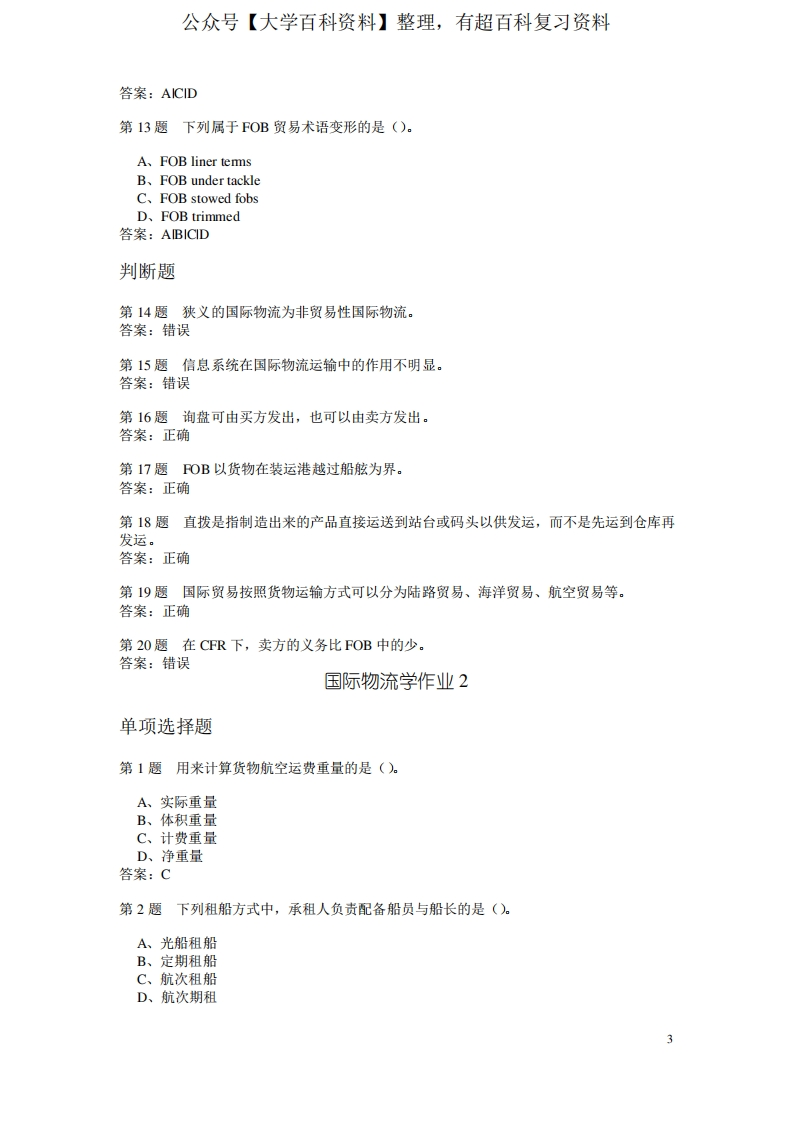 国际物流学作业题与答案汇编-学习资源网 - 分享优质学习资料