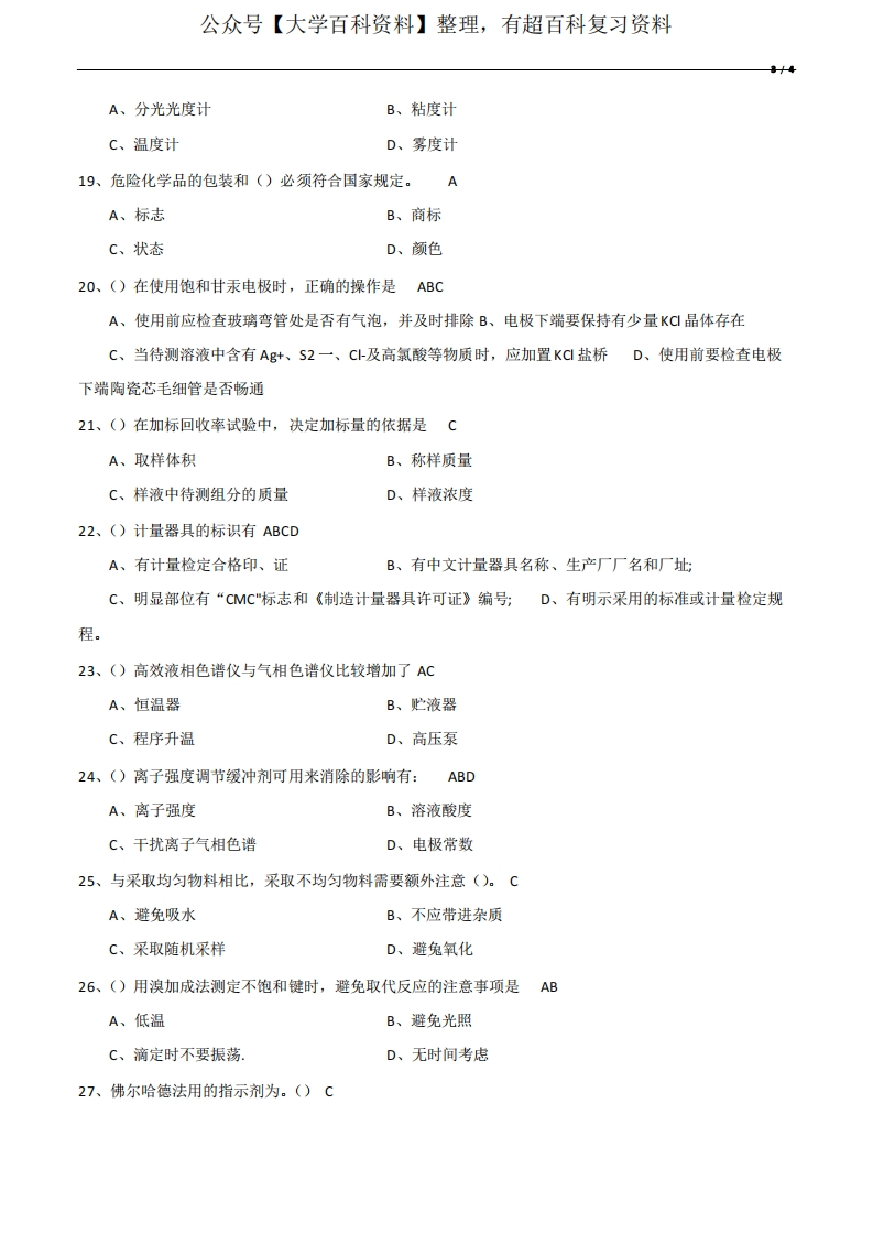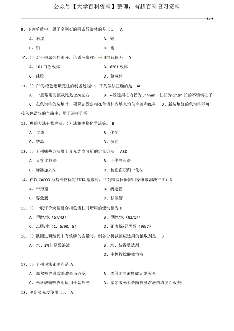 分析化学期末考试试卷猴哥6个月前发布关注私信0.22MB4页03140分析化学期末考试试卷此内容为免费资源,请登录后查看¥0 登录查看免费资源 第1页 / 共4页 第2页 / 共4页 第3页 / 共4页 该文档为免费文档,您可直接下载完整版进行阅读 © 版权声明文章版权归作者所有,未经允许请勿转载。THE END期末复习 喜欢就支持一下吧点赞40赞赏 分享QQ空间微博QQ好友海报分享复制链接收藏