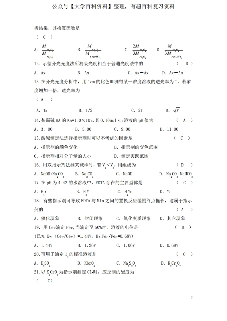 (完整版)分析化学练习题及答案猴哥6个月前发布关注私信1.09MB22页03929(完整版)分析化学练习题及答案此内容为免费资源,请登录后查看¥0 登录查看免费资源 第1页 / 共22页 第2页 / 共22页 第3页 / 共22页 该文档为免费文档,您可直接下载完整版进行阅读 © 版权声明文章版权归作者所有,未经允许请勿转载。THE END期末复习 喜欢就支持一下吧点赞29赞赏 分享QQ空间微博QQ好友海报分享复制链接收藏