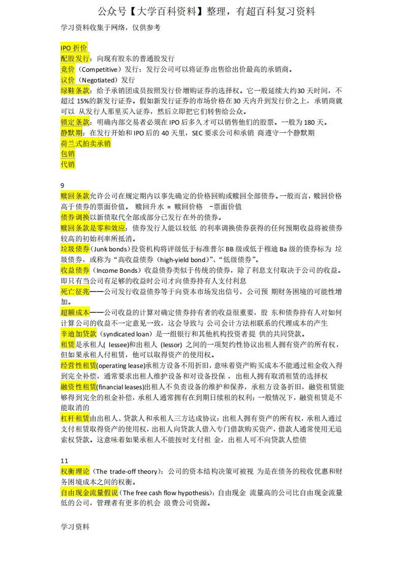 公司理财名词解释整理s-学习资源网 - 分享优质学习资料