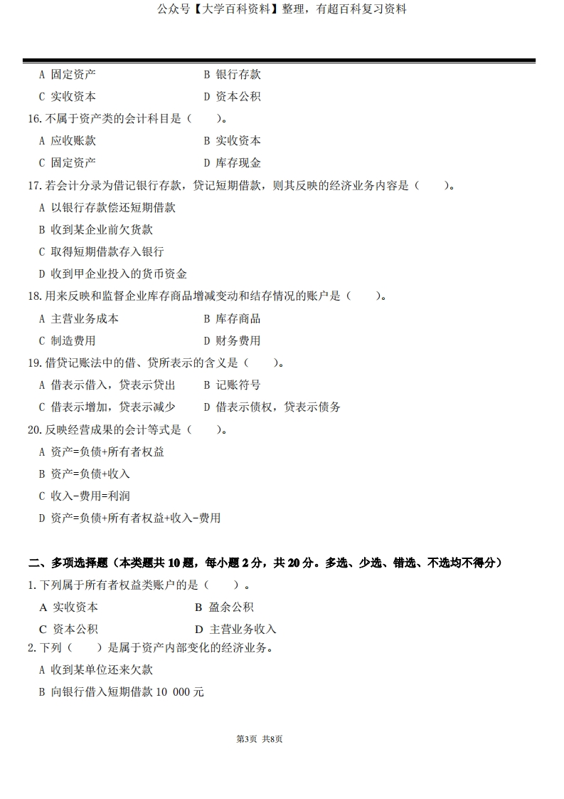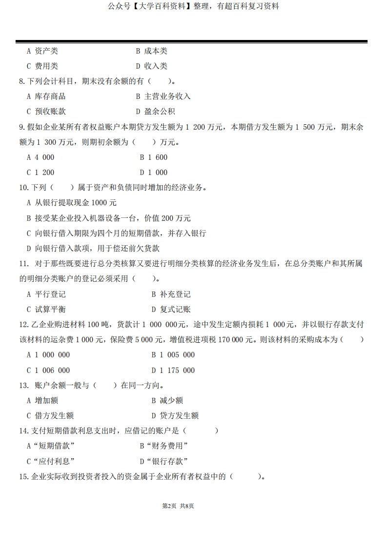 《会计学原理》期中试卷A及答案猴哥6个月前发布关注私信0.25MB8页06150《会计学原理》期中试卷A及答案此内容为免费资源,请登录后查看¥0 登录查看免费资源 第1页 / 共8页 第2页 / 共8页 第3页 / 共8页 该文档为免费文档,您可直接下载完整版进行阅读 © 版权声明文章版权归作者所有,未经允许请勿转载。THE END期末复习 喜欢就支持一下吧点赞50赞赏 分享QQ空间微博QQ好友海报分享复制链接收藏