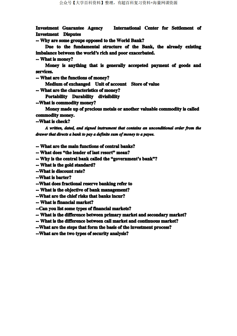 金融英语复习资料猴哥6个月前发布关注私信72.78KB2页08050金融英语复习资料此内容为免费资源,请登录后查看¥0 登录查看免费资源 第1页 / 共2页 第2页 / 共2页 已完成全部阅读,共2页 © 版权声明文章版权归作者所有,未经允许请勿转载。THE END期末复习 喜欢就支持一下吧点赞50赞赏 分享QQ空间微博QQ好友海报分享复制链接收藏