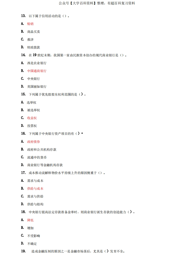 国家开放大学电大本科《金融学》期末试题题库及答案(c试卷号:1046)猴哥6个月前发布关注私信1.17MB33页07746国家开放大学电大本科《金融学》期末试题题库及答案(c试卷号:1046)此内容为免费资源,请登录后查看¥0 登录查看免费资源 第1页 / 共33页 第2页 / 共33页 第3页 / 共33页 该文档为免费文档,您可直接下载完整版进行阅读 © 版权声明文章版权归作者所有,未经允许请勿转载。THE END期末复习 喜欢就支持一下吧点赞46赞赏 分享QQ空间微博QQ好友海报分享复制链接收藏