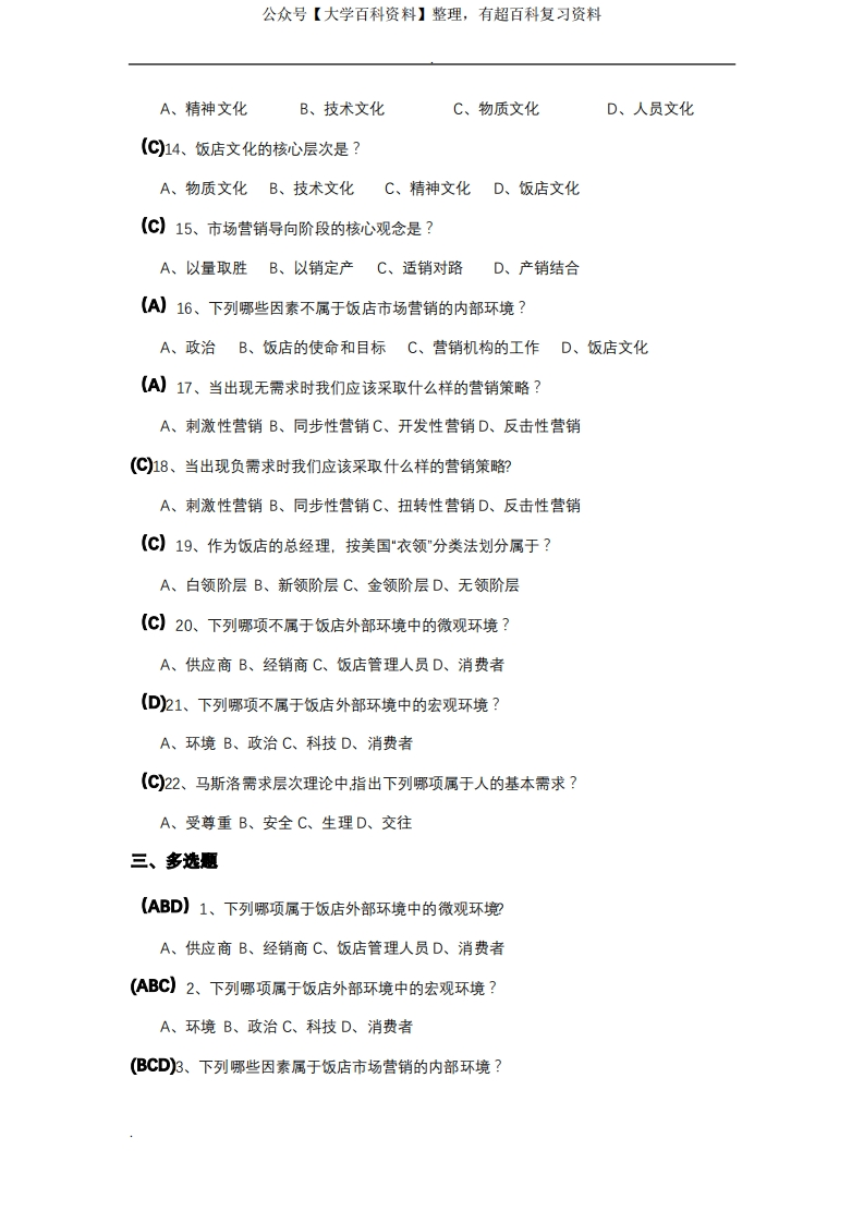 酒店市场营销考试卷(有答案)猴哥6个月前发布关注私信0.52MB7页04929酒店市场营销考试卷(有答案)此内容为免费资源,请登录后查看¥0 登录查看免费资源 第1页 / 共7页 第2页 / 共7页 第3页 / 共7页 该文档为免费文档,您可直接下载完整版进行阅读 © 版权声明文章版权归作者所有,未经允许请勿转载。THE END期末复习 喜欢就支持一下吧点赞29赞赏 分享QQ空间微博QQ好友海报分享复制链接收藏