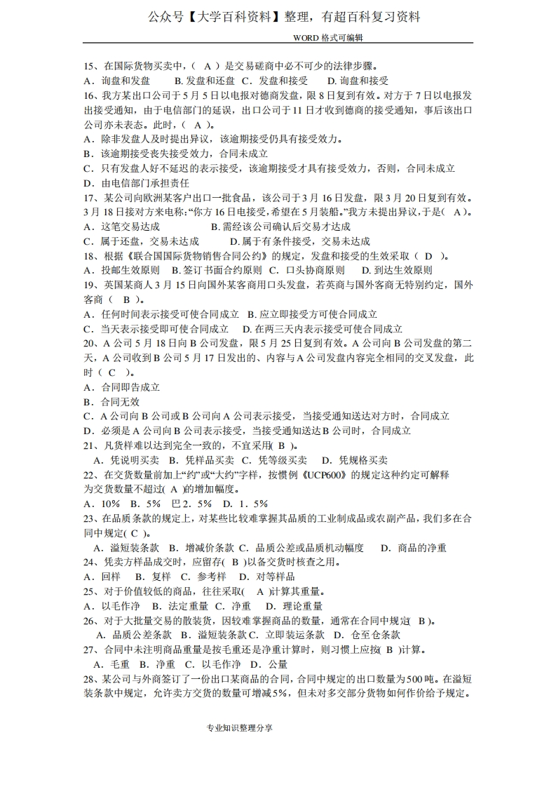 进出口贸易实务选择题(答案解析)猴哥6个月前发布关注私信0.46MB9页07922进出口贸易实务选择题(答案解析)此内容为免费资源,请登录后查看¥0 登录查看免费资源 第1页 / 共9页 第2页 / 共9页 第3页 / 共9页 该文档为免费文档,您可直接下载完整版进行阅读 © 版权声明文章版权归作者所有,未经允许请勿转载。THE END期末复习 喜欢就支持一下吧点赞22赞赏 分享QQ空间微博QQ好友海报分享复制链接收藏