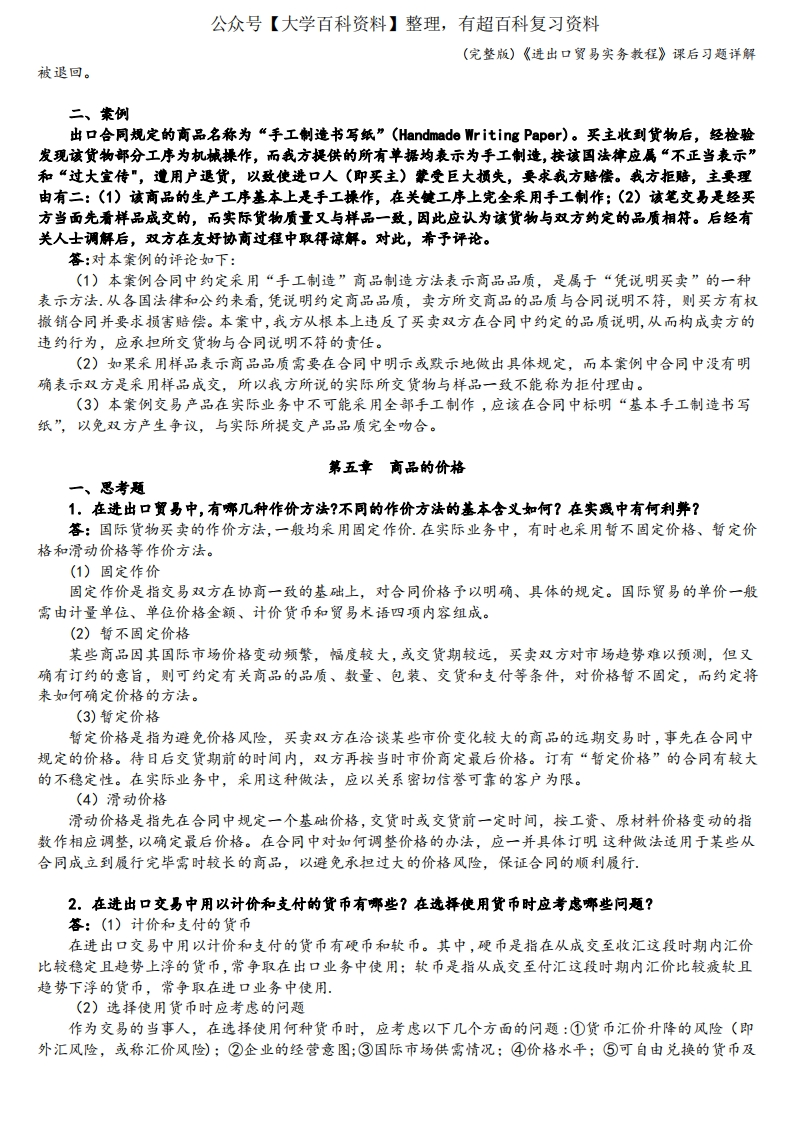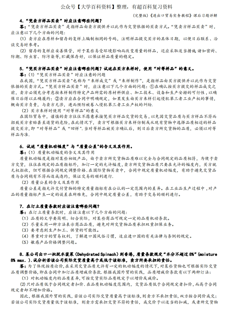 (完整版)《进出口贸易实务教程》课后习题详解猴哥6个月前发布关注私信5.96MB85页03031(完整版)《进出口贸易实务教程》课后习题详解此内容为免费资源,请登录后查看¥0 登录查看免费资源 第1页 / 共85页 第2页 / 共85页 第3页 / 共85页 该文档为免费文档,您可直接下载完整版进行阅读 © 版权声明文章版权归作者所有,未经允许请勿转载。THE END期末复习 喜欢就支持一下吧点赞31赞赏 分享QQ空间微博QQ好友海报分享复制链接收藏