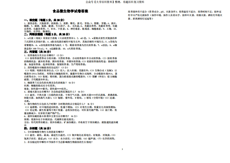 (完整版)食品微生物学试题及答案猴哥6个月前发布关注私信0.17MB3页08360(完整版)食品微生物学试题及答案此内容为免费资源,请登录后查看¥0 登录查看免费资源 第1页 / 共3页 第2页 / 共3页 第3页 / 共3页 已完成全部阅读,共3页 © 版权声明文章版权归作者所有,未经允许请勿转载。THE END期末复习 喜欢就支持一下吧点赞60赞赏 分享QQ空间微博QQ好友海报分享复制链接收藏