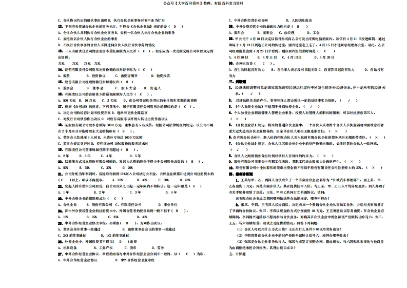 经济法概论期末考试及答案猴哥6个月前发布关注私信0.31MB4页06233经济法概论期末考试及答案此内容为免费资源,请登录后查看¥0 登录查看免费资源 第1页 / 共4页 第2页 / 共4页 第3页 / 共4页 该文档为免费文档,您可直接下载完整版进行阅读 © 版权声明文章版权归作者所有,未经允许请勿转载。THE END期末复习 喜欢就支持一下吧点赞33赞赏 分享QQ空间微博QQ好友海报分享复制链接收藏