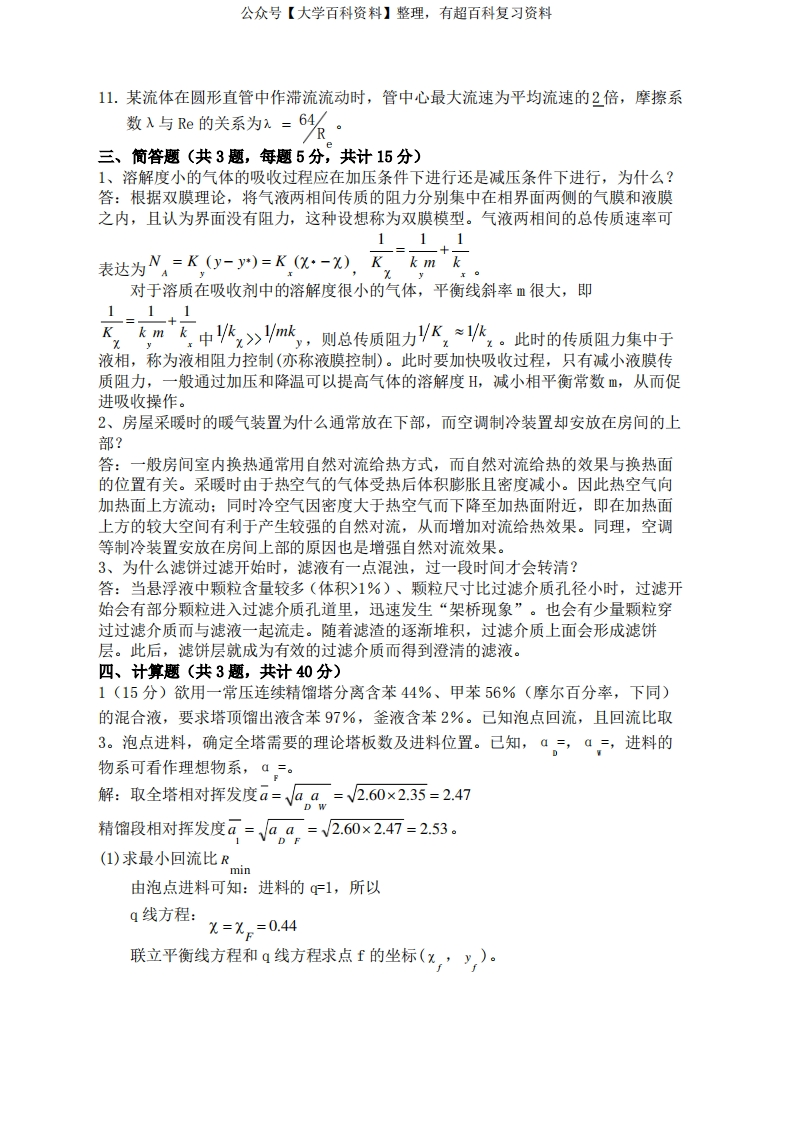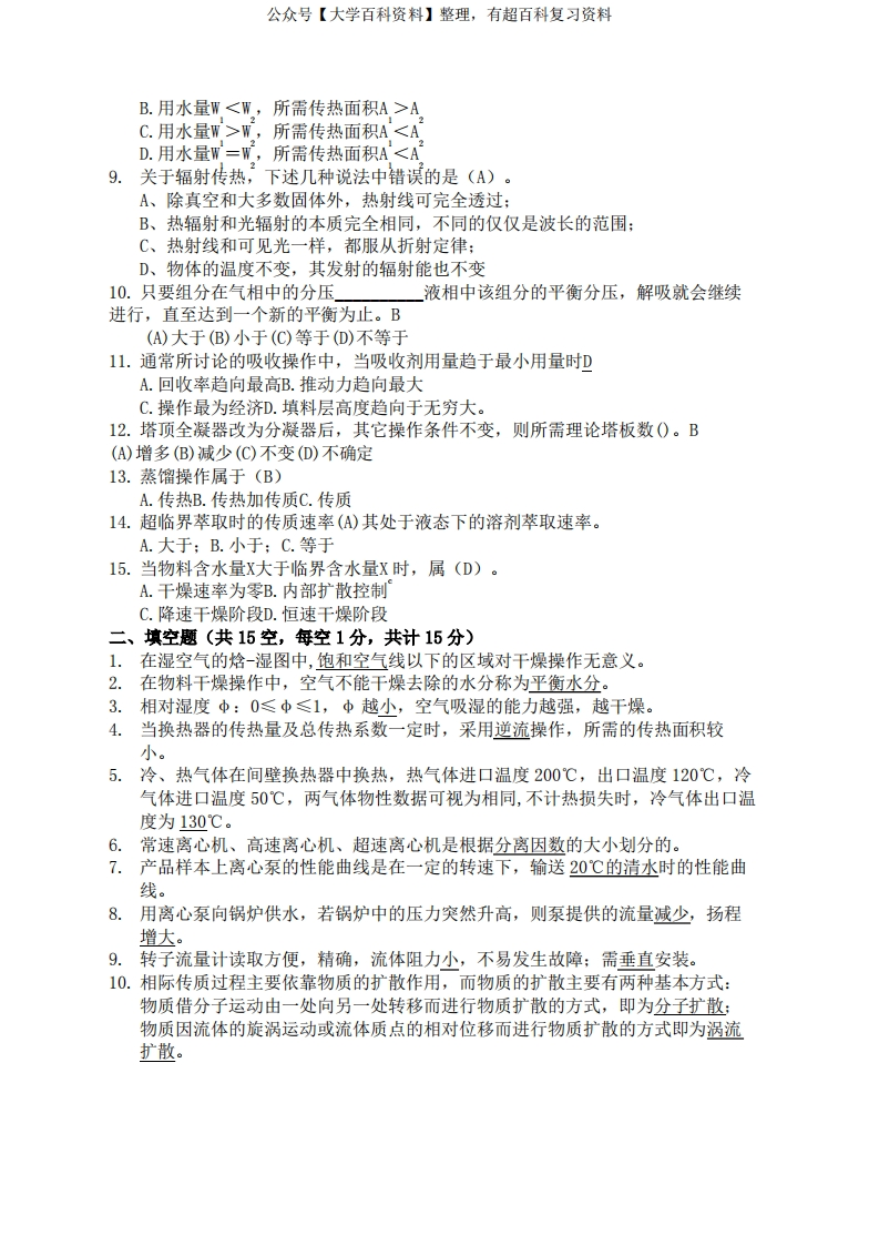 食品工程原理期末试题A答案