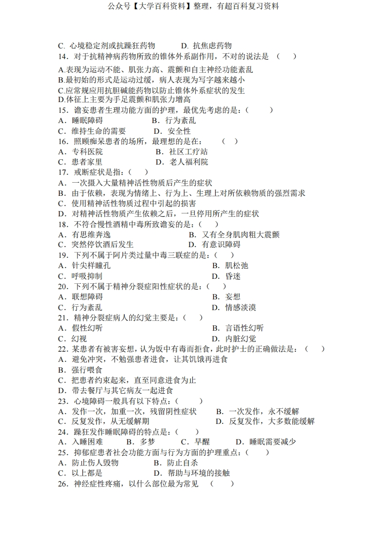 最新精神科护理学考试试题(附答案)猴哥6个月前发布关注私信0.73MB13页09715最新精神科护理学考试试题(附答案)此内容为免费资源,请登录后查看¥0 登录查看免费资源 第1页 / 共13页 第2页 / 共13页 第3页 / 共13页 该文档为免费文档,您可直接下载完整版进行阅读 © 版权声明文章版权归作者所有,未经允许请勿转载。THE END期末复习 喜欢就支持一下吧点赞15赞赏 分享QQ空间微博QQ好友海报分享复制链接收藏