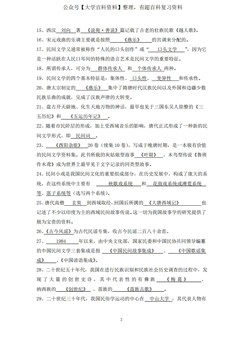 民间文学试题库-学习资源网 - 分享优质学习资料