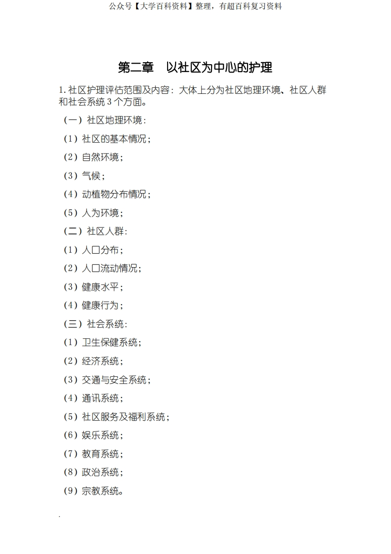 社区护理学考试重点(修订版)猴哥6个月前发布关注私信0.15MB11页04937社区护理学考试重点(修订版)此内容为免费资源,请登录后查看¥0 登录查看免费资源 第1页 / 共11页 第2页 / 共11页 第3页 / 共11页 该文档为免费文档,您可直接下载完整版进行阅读 © 版权声明文章版权归作者所有,未经允许请勿转载。THE END期末复习 喜欢就支持一下吧点赞37赞赏 分享QQ空间微博QQ好友海报分享复制链接收藏