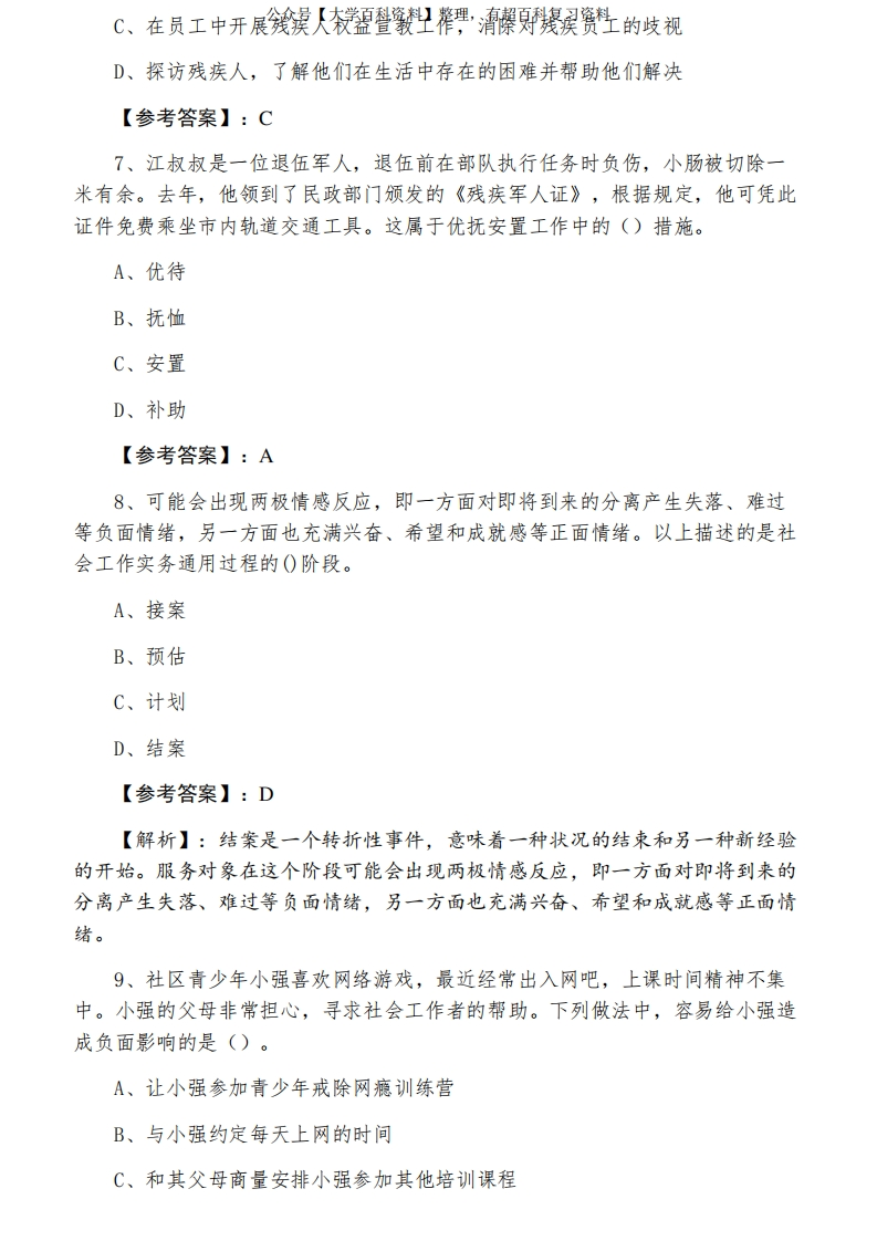 初级社会工作者资格考试《社会工作实务》测试卷(含答案及解析)猴哥6个月前发布关注私信0.47MB8页09411初级社会工作者资格考试《社会工作实务》测试卷(含答案及解析)此内容为免费资源,请登录后查看¥0 登录查看免费资源 第1页 / 共8页 第2页 / 共8页 第3页 / 共8页 该文档为免费文档,您可直接下载完整版进行阅读 © 版权声明文章版权归作者所有,未经允许请勿转载。THE END期末复习 喜欢就支持一下吧点赞11赞赏 分享QQ空间微博QQ好友海报分享复制链接收藏