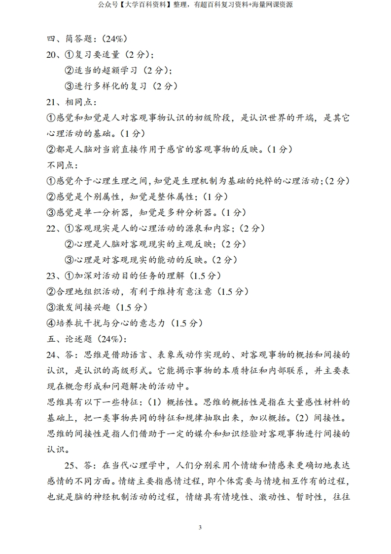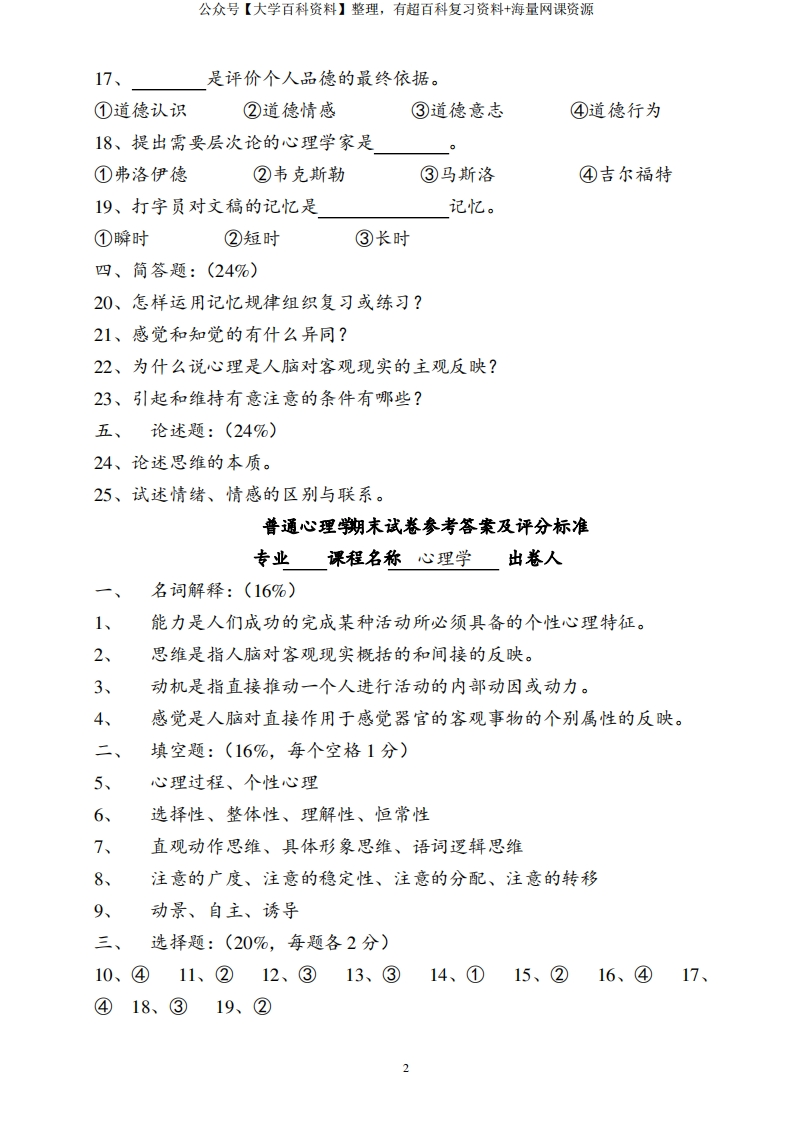 《普通心理学》试卷及答案-学习资源网 - 分享优质学习资料
