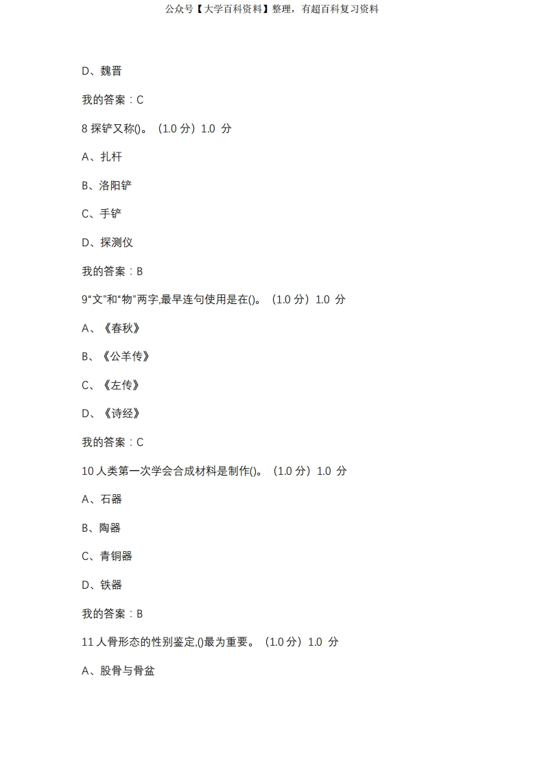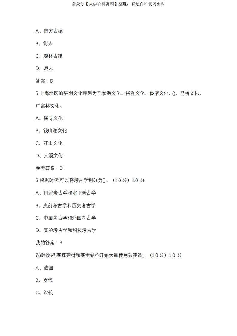 2020旧石器时代考古与人类考试试题及答案最新完整版-学习资源网 - 分享优质学习资料