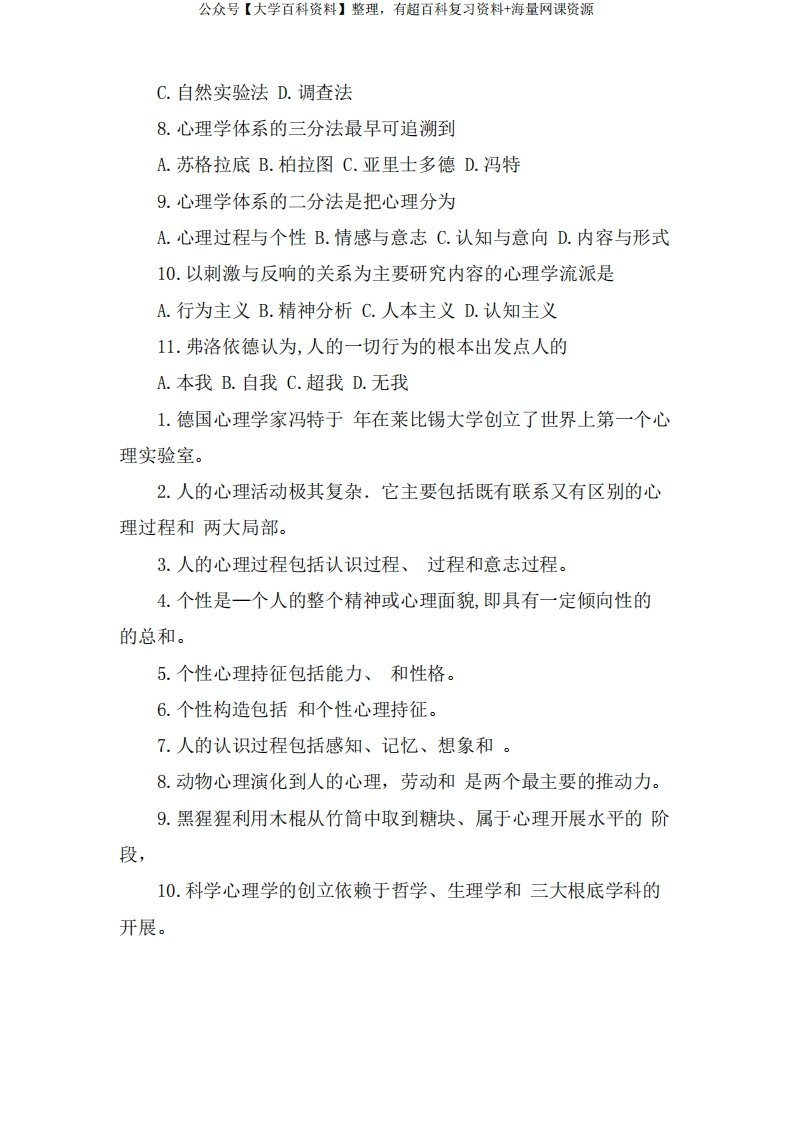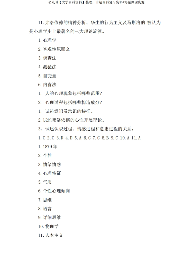 普通心理学试题答案-学习资源网 - 分享优质学习资料
