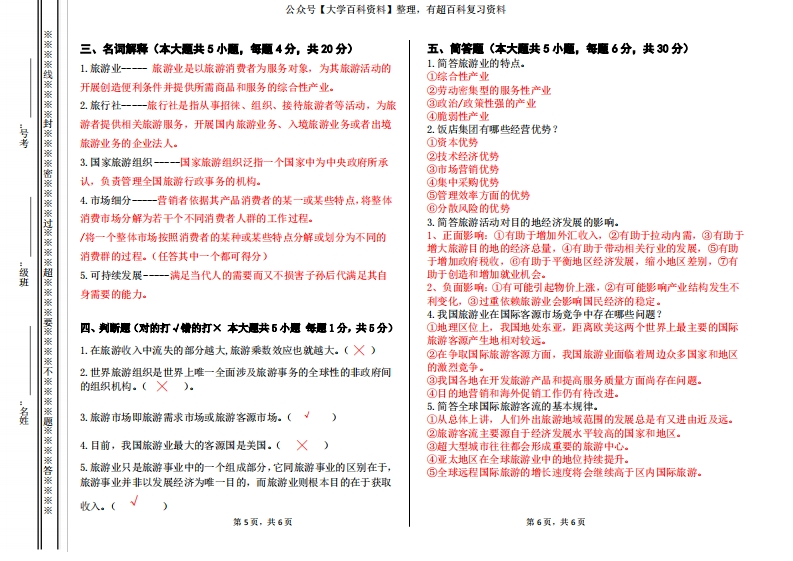 旅游学策划期末考试试题及答案-学习资源网 - 分享优质学习资料