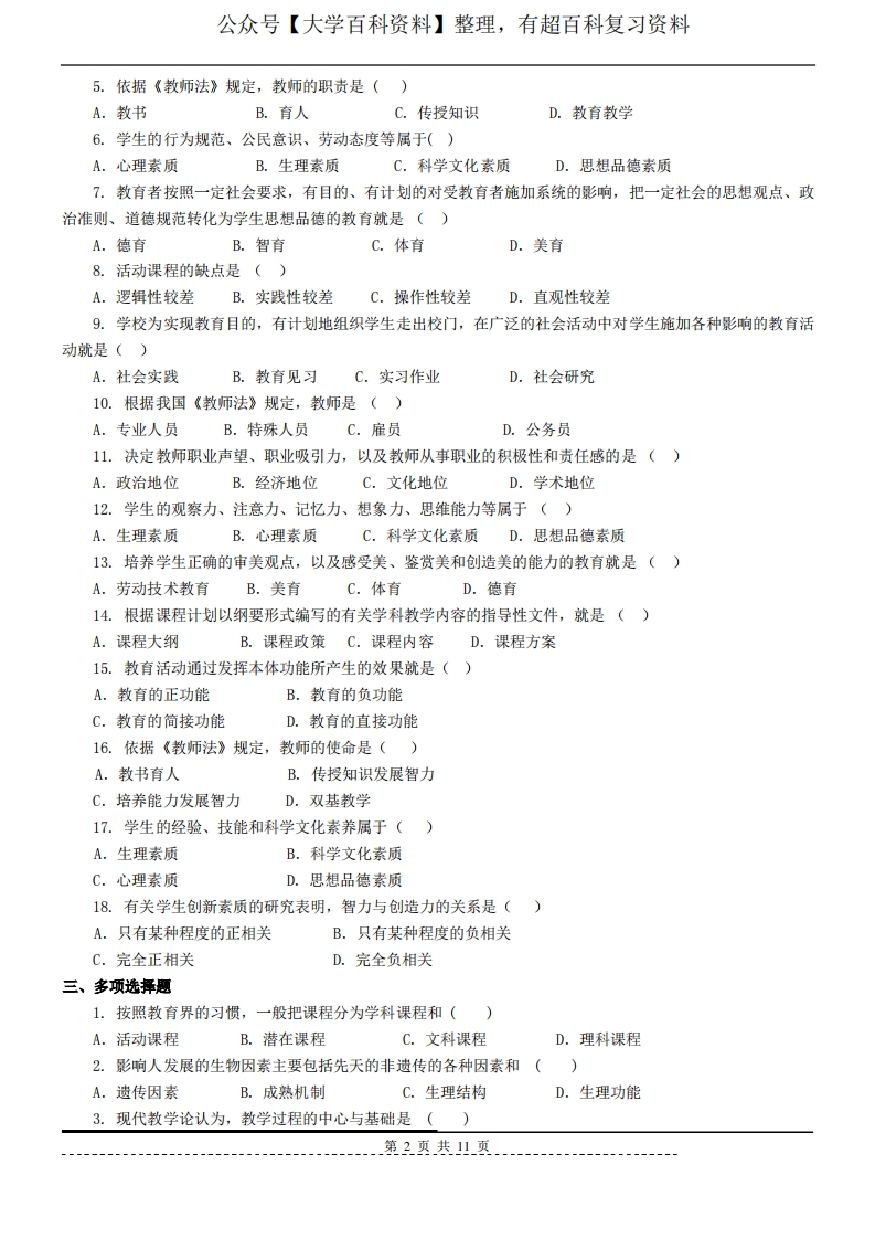 《教育学原理》题库及答案猴哥6个月前发布关注私信0.55MB11页04144《教育学原理》题库及答案此内容为免费资源,请登录后查看¥0 登录查看免费资源 第1页 / 共11页 第2页 / 共11页 第3页 / 共11页 该文档为免费文档,您可直接下载完整版进行阅读 © 版权声明文章版权归作者所有,未经允许请勿转载。THE END期末复习 喜欢就支持一下吧点赞44赞赏 分享QQ空间微博QQ好友海报分享复制链接收藏
