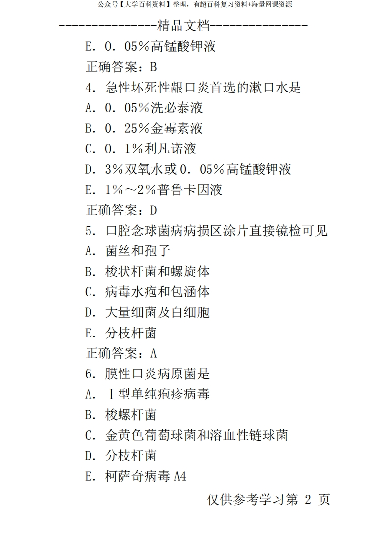 口腔内科学试题及答案猴哥6个月前发布关注私信3.64MB174页07618口腔内科学试题及答案此内容为免费资源,请登录后查看¥0 登录查看免费资源 第1页 / 共174页 第2页 / 共174页 第3页 / 共174页 该文档为免费文档,您可直接下载完整版进行阅读 © 版权声明文章版权归作者所有,未经允许请勿转载。THE END期末复习 喜欢就支持一下吧点赞18赞赏 分享QQ空间微博QQ好友海报分享复制链接收藏