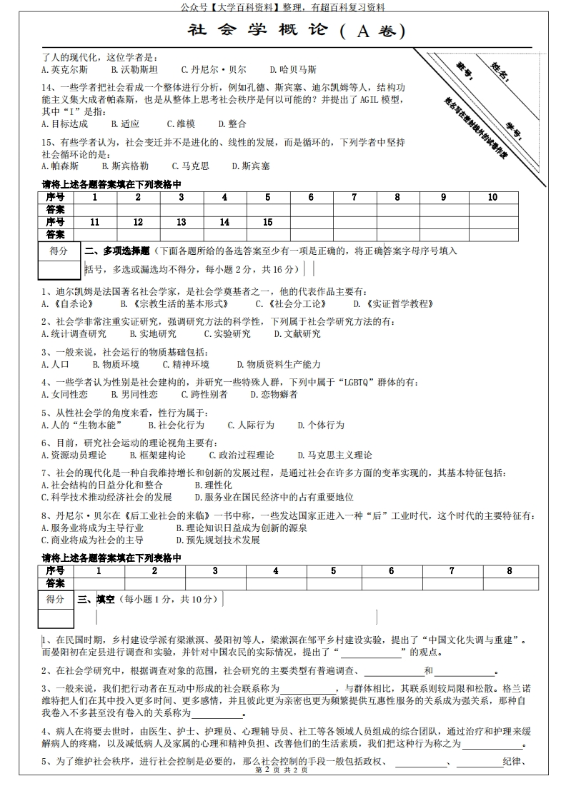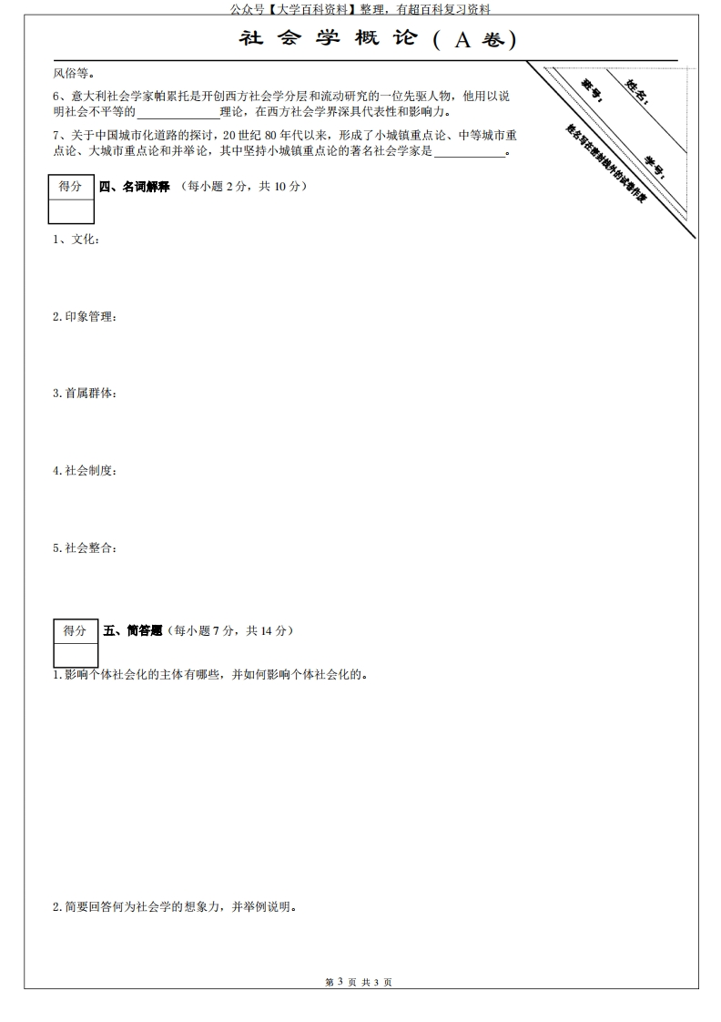 社会学概论期末试题A卷及参考答案-学习资源网 - 分享优质学习资料