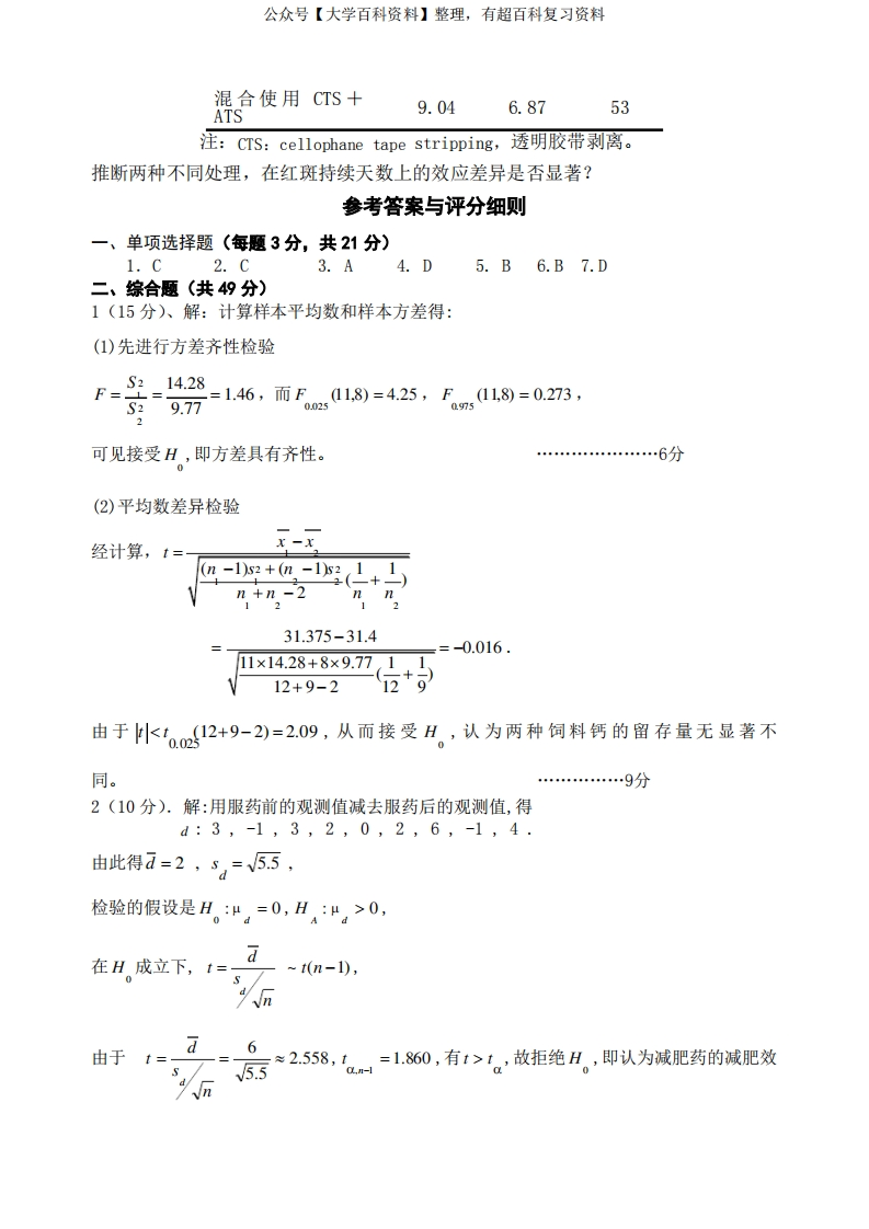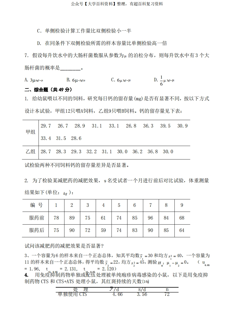 生物统计学》期末考试试卷综合猴哥6个月前发布关注私信0.52MB9页03354生物统计学》期末考试试卷综合此内容为免费资源,请登录后查看¥0 登录查看免费资源 第1页 / 共9页 第2页 / 共9页 第3页 / 共9页 该文档为免费文档,您可直接下载完整版进行阅读 © 版权声明文章版权归作者所有,未经允许请勿转载。THE END期末复习 喜欢就支持一下吧点赞54赞赏 分享QQ空间微博QQ好友海报分享复制链接收藏