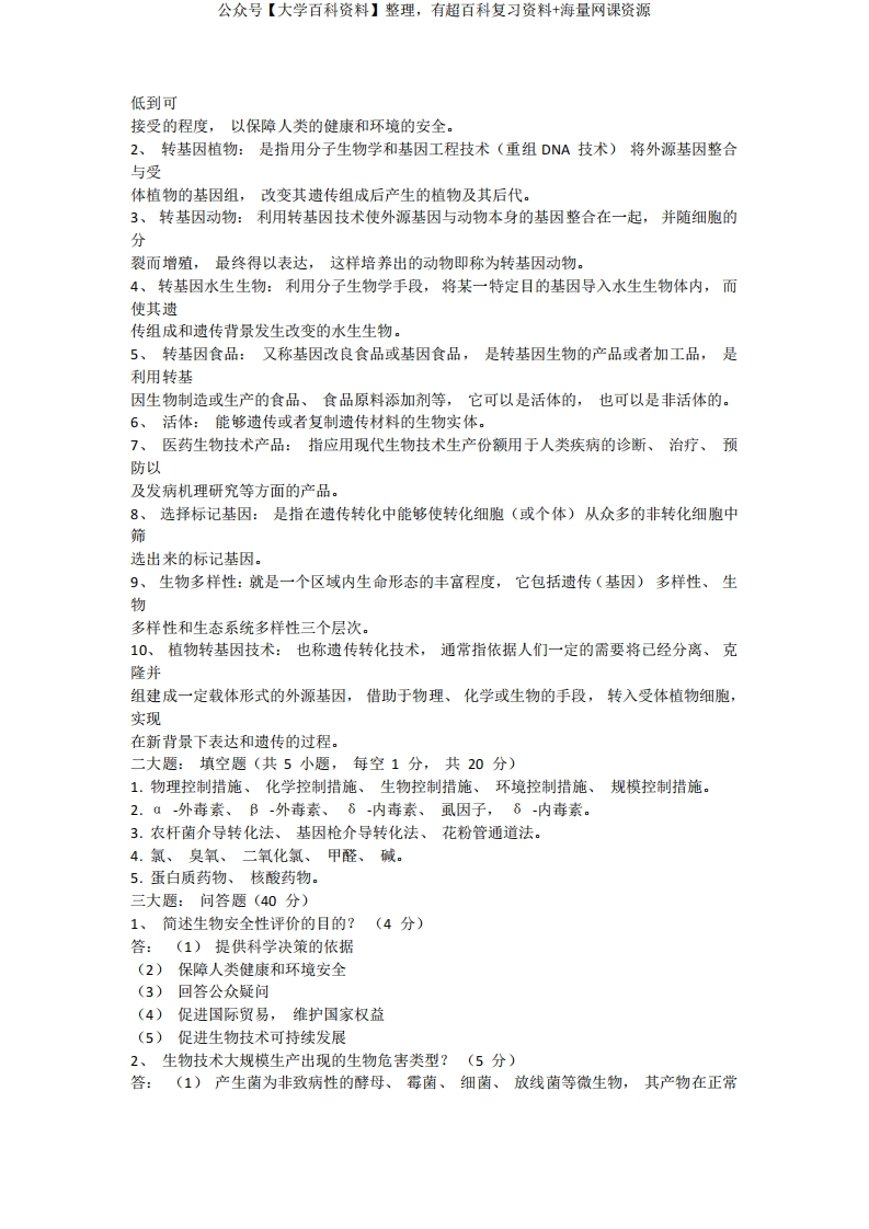 大学《生物安全》课程考试试卷(含答案)猴哥6个月前发布关注私信0.18MB4页05135大学《生物安全》课程考试试卷(含答案)此内容为免费资源,请登录后查看¥0 登录查看免费资源 第1页 / 共4页 第2页 / 共4页 第3页 / 共4页 该文档为免费文档,您可直接下载完整版进行阅读 © 版权声明文章版权归作者所有,未经允许请勿转载。THE END期末复习 喜欢就支持一下吧点赞35赞赏 分享QQ空间微博QQ好友海报分享复制链接收藏