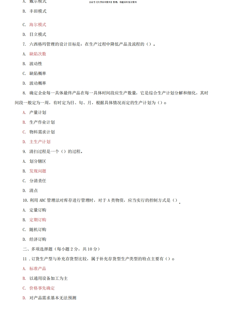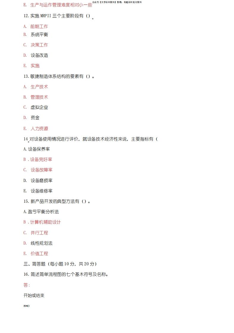 国家开放大学电大专科《生产与运作管理》2024-2025期末试题及答案猴哥6个月前发布关注私信0.18MB5页05924国家开放大学电大专科《生产与运作管理》2024-2025期末试题及答案此内容为免费资源,请登录后查看¥0 登录查看免费资源 第1页 / 共5页 第2页 / 共5页 第3页 / 共5页 该文档为免费文档,您可直接下载完整版进行阅读 © 版权声明文章版权归作者所有,未经允许请勿转载。THE END期末复习 喜欢就支持一下吧点赞24赞赏 分享QQ空间微博QQ好友海报分享复制链接收藏