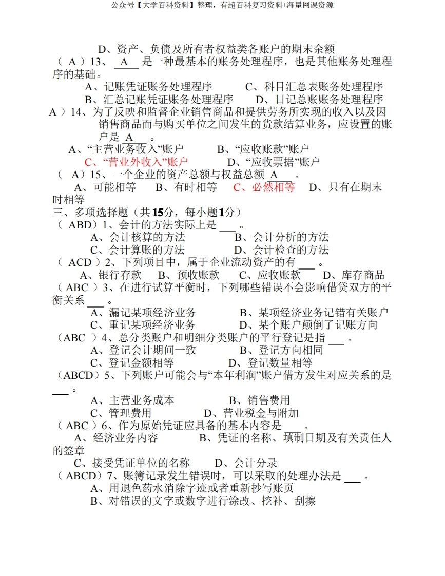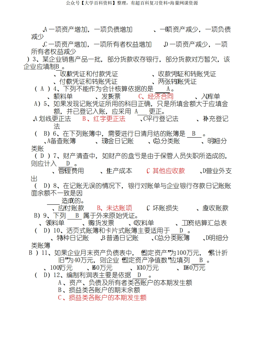 施工企业会计学试题及答案很全-学习资源网 - 分享优质学习资料