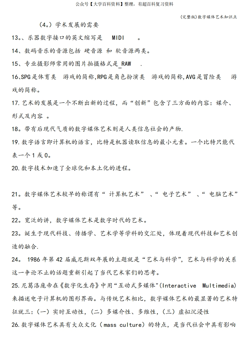 (完整版)数字媒体艺术知识点猴哥6个月前发布关注私信0.16MB3页06418(完整版)数字媒体艺术知识点此内容为免费资源,请登录后查看¥0 登录查看免费资源 第1页 / 共3页 第2页 / 共3页 第3页 / 共3页 已完成全部阅读,共3页 © 版权声明文章版权归作者所有,未经允许请勿转载。THE END期末复习 喜欢就支持一下吧点赞18赞赏 分享QQ空间微博QQ好友海报分享复制链接收藏