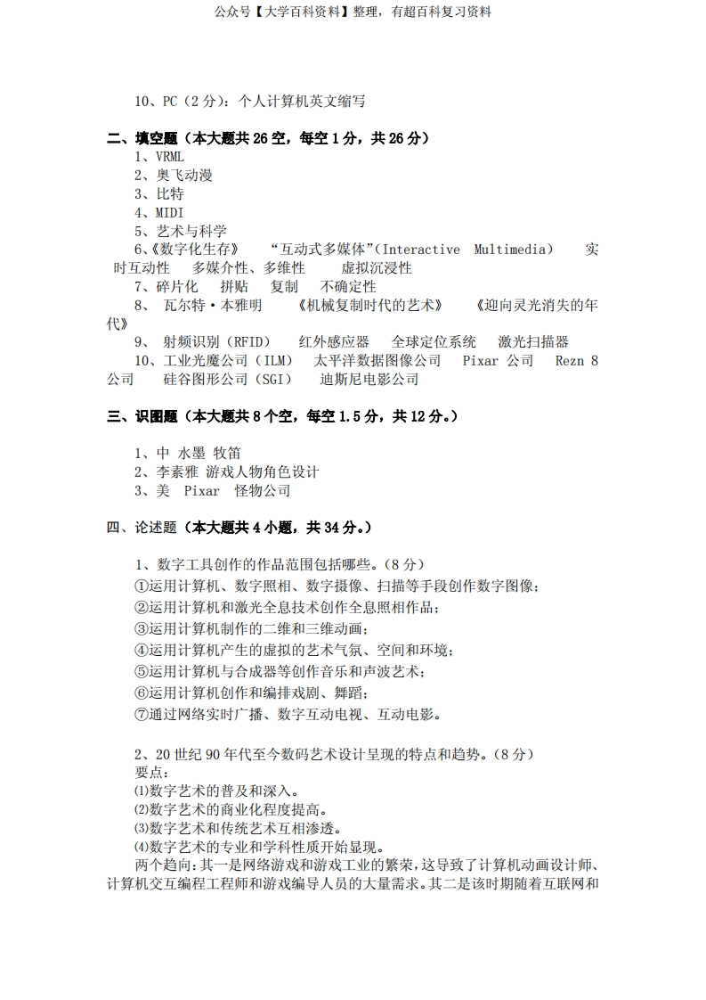 数字媒体艺术概论B卷答案猴哥6个月前发布关注私信0.25MB4页06860数字媒体艺术概论B卷答案此内容为免费资源,请登录后查看¥0 登录查看免费资源 第1页 / 共4页 第2页 / 共4页 第3页 / 共4页 该文档为免费文档,您可直接下载完整版进行阅读 © 版权声明文章版权归作者所有,未经允许请勿转载。THE END期末复习 喜欢就支持一下吧点赞60赞赏 分享QQ空间微博QQ好友海报分享复制链接收藏