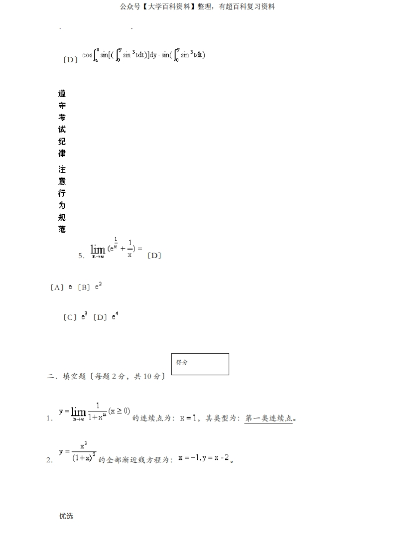 哈尔滨工业大学工科数学分析期末考试试卷猴哥6个月前发布关注私信1.18MB10页03816哈尔滨工业大学工科数学分析期末考试试卷此内容为免费资源,请登录后查看¥0 登录查看免费资源 第1页 / 共10页 第2页 / 共10页 第3页 / 共10页 该文档为免费文档,您可直接下载完整版进行阅读 © 版权声明文章版权归作者所有,未经允许请勿转载。THE END《哈尔滨工业大学》期中期末历年真题期末试卷 喜欢就支持一下吧点赞16赞赏 分享QQ空间微博QQ好友海报分享复制链接收藏